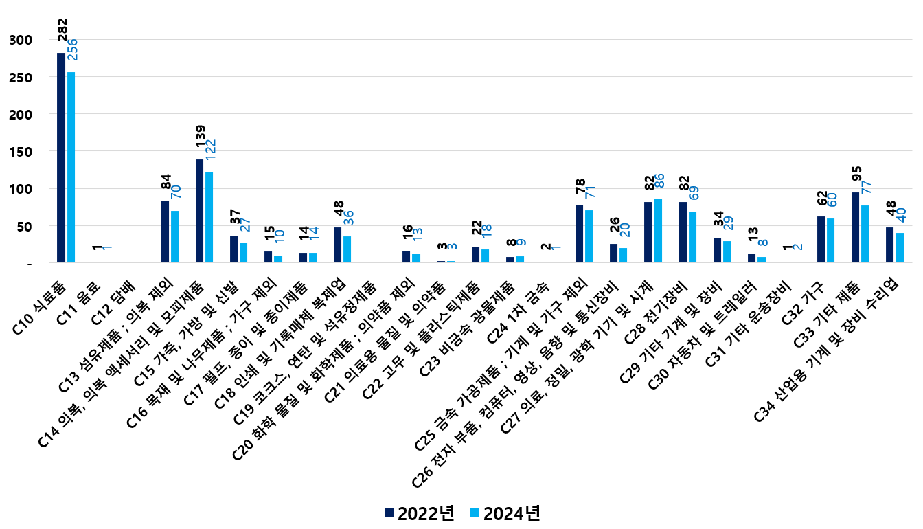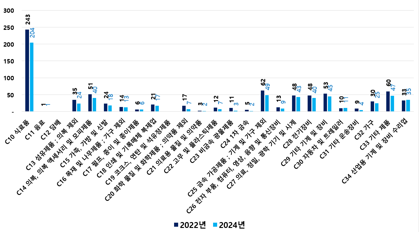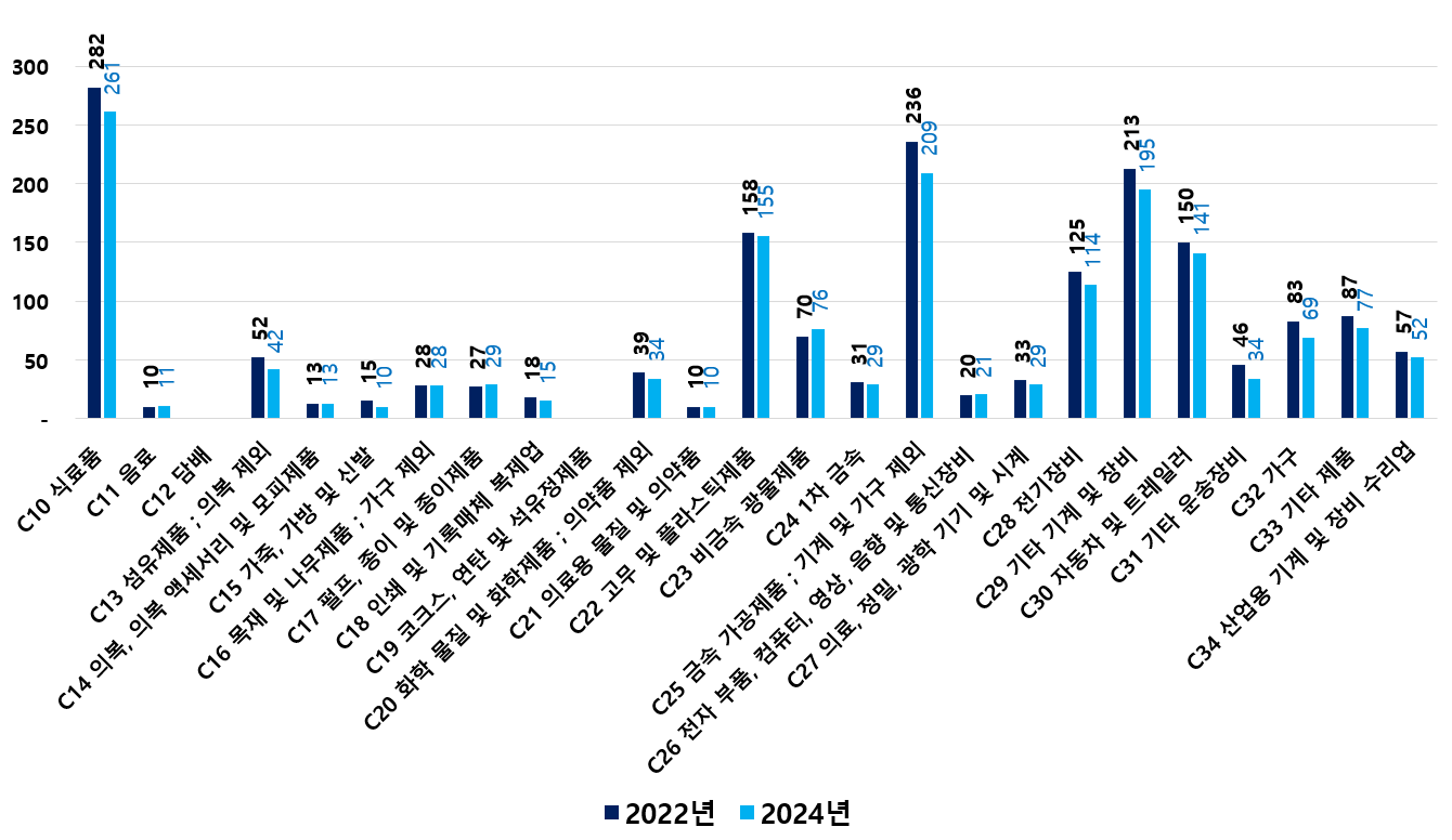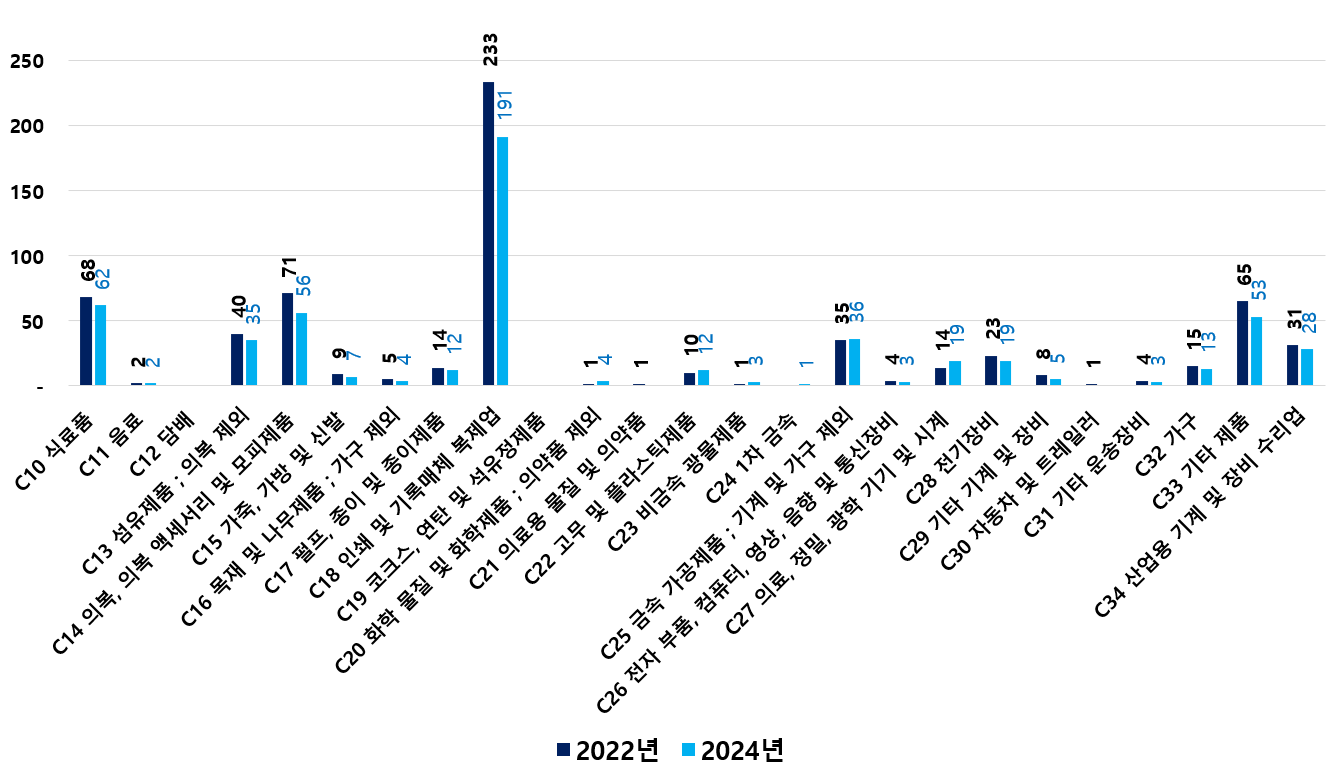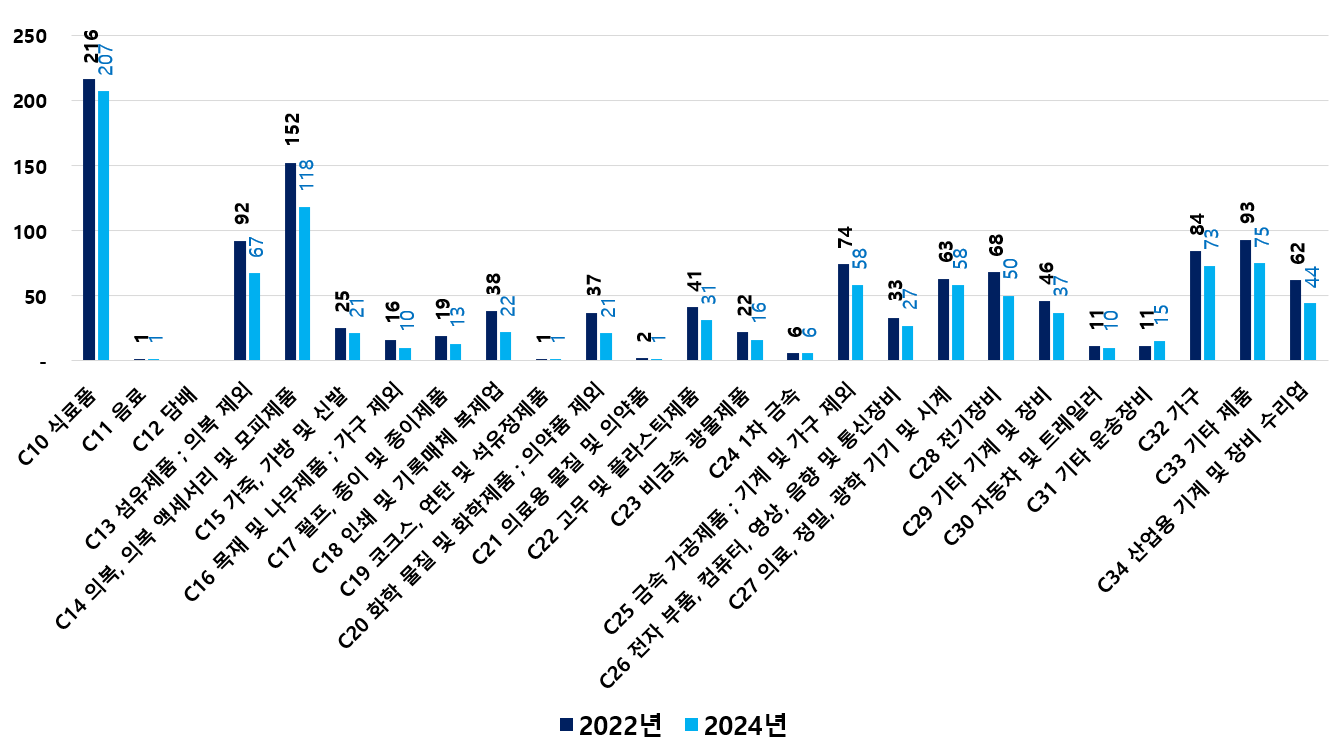 2) 2022 ~ 2024년 업종별 제조사업체 현황