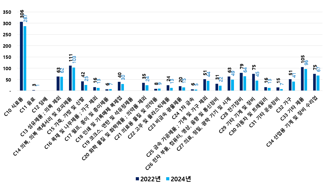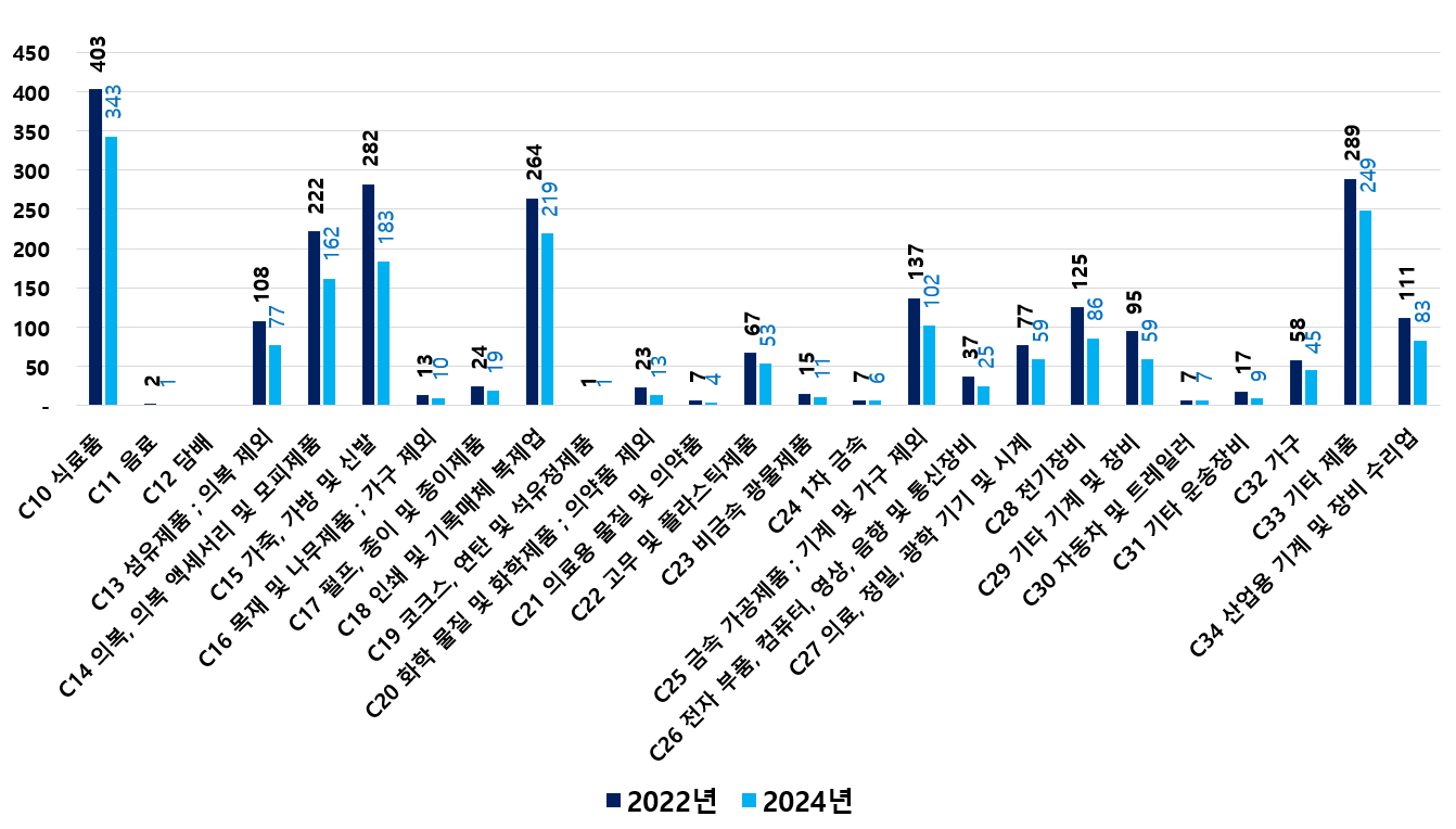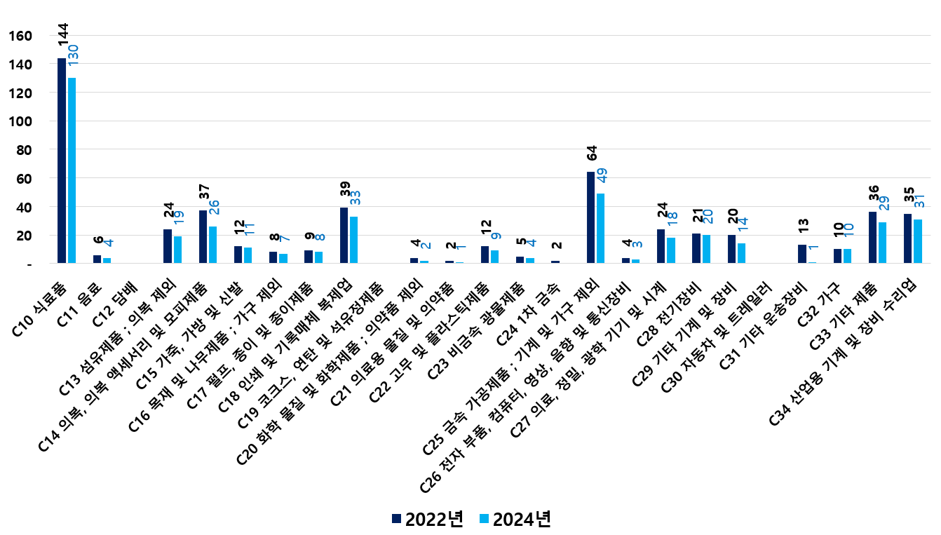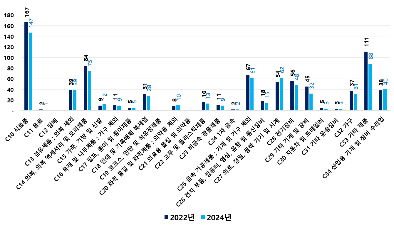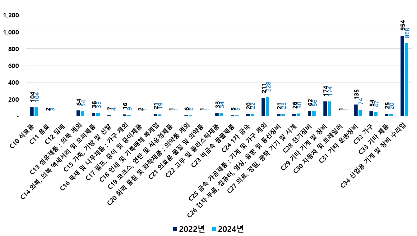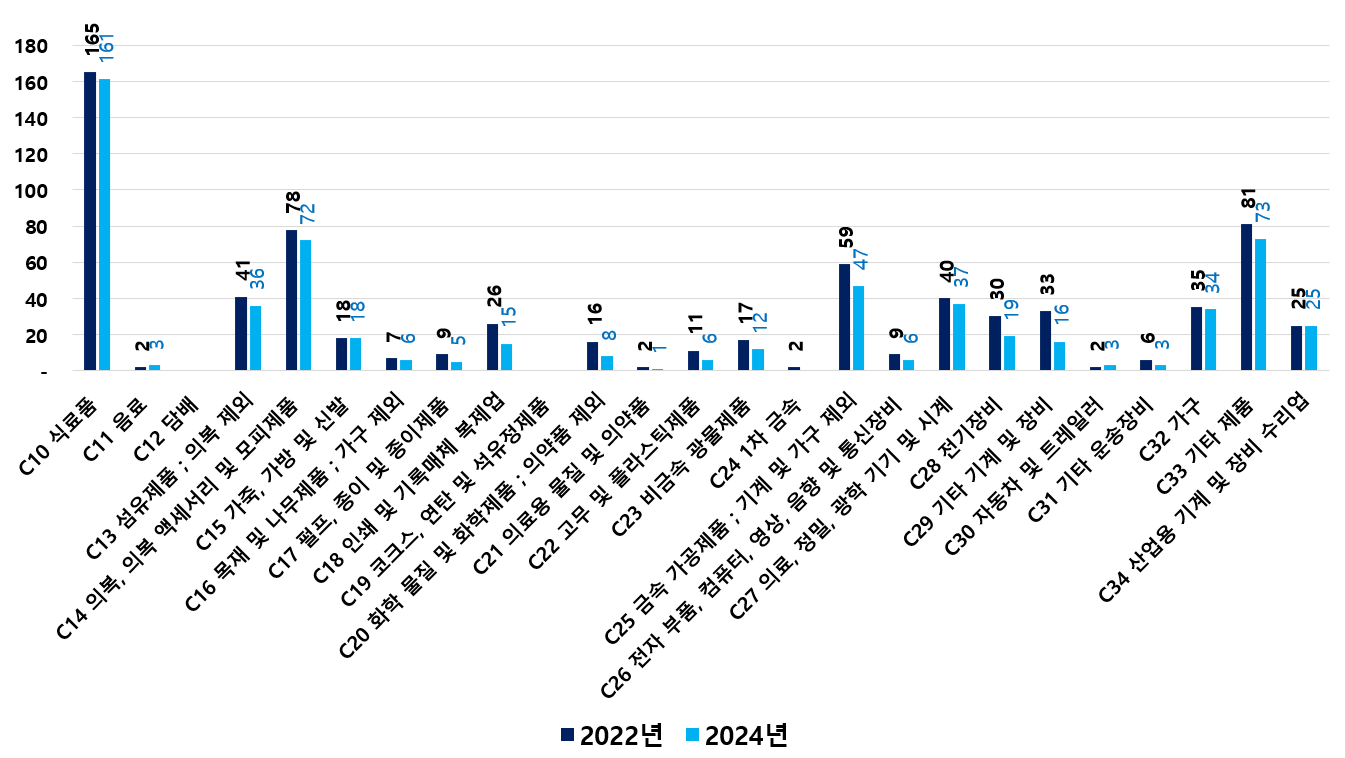 2) 2022 ~ 2024년 업종별 제조사업체 현황