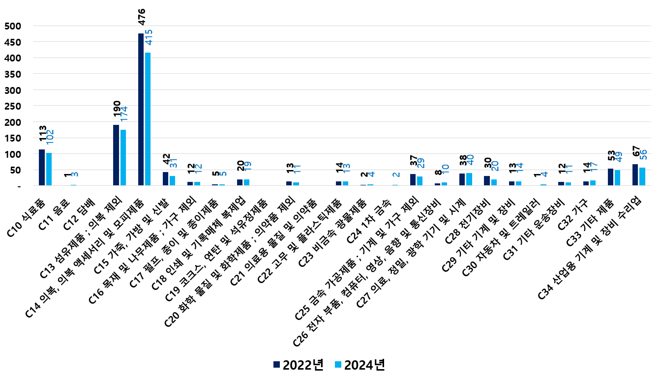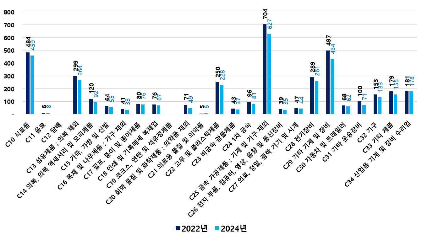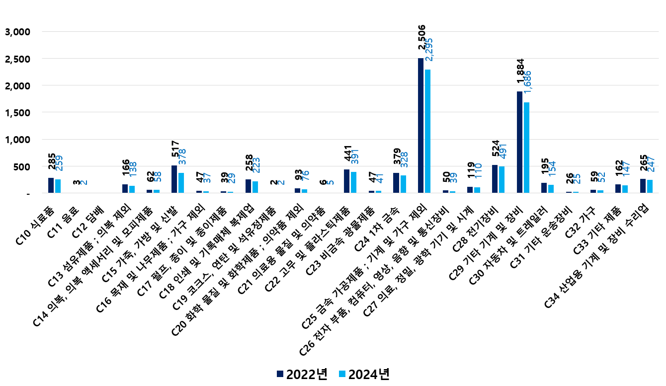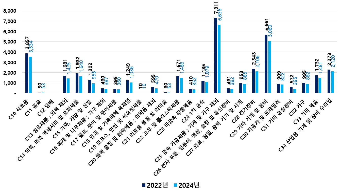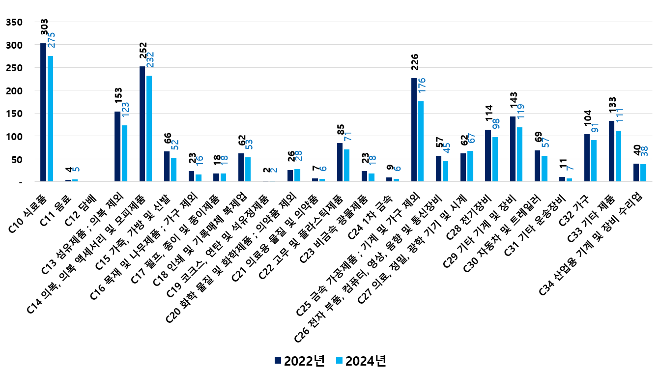 2) 2022 ~ 2024년 업종별 제조사업체 현황