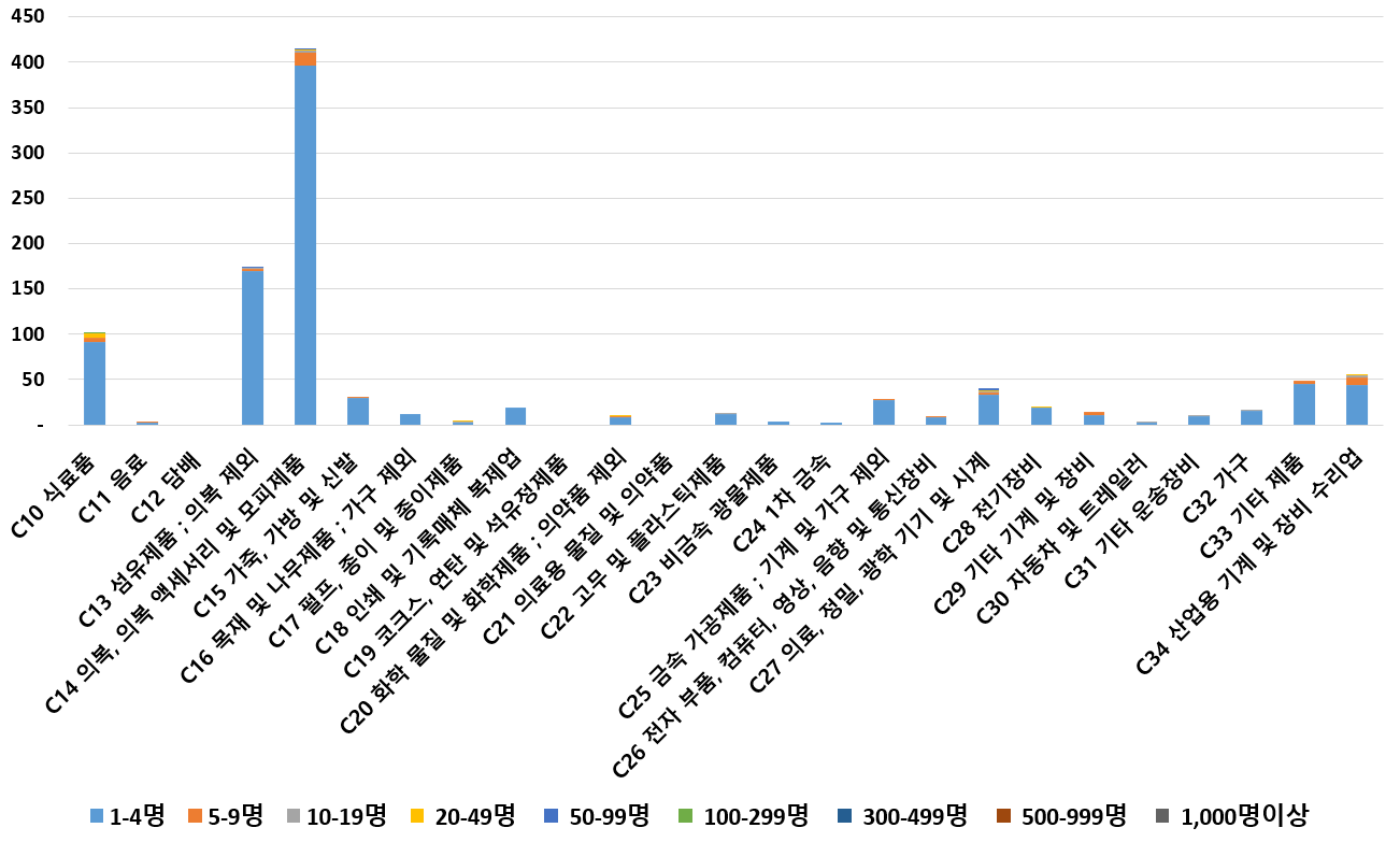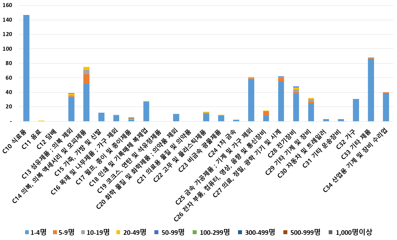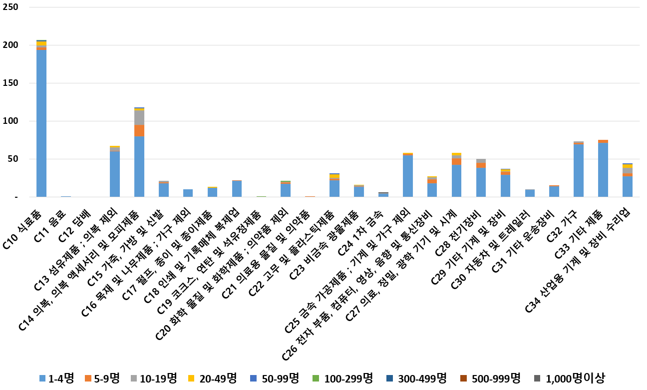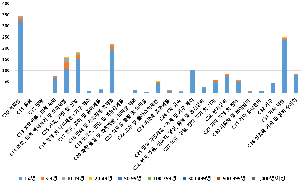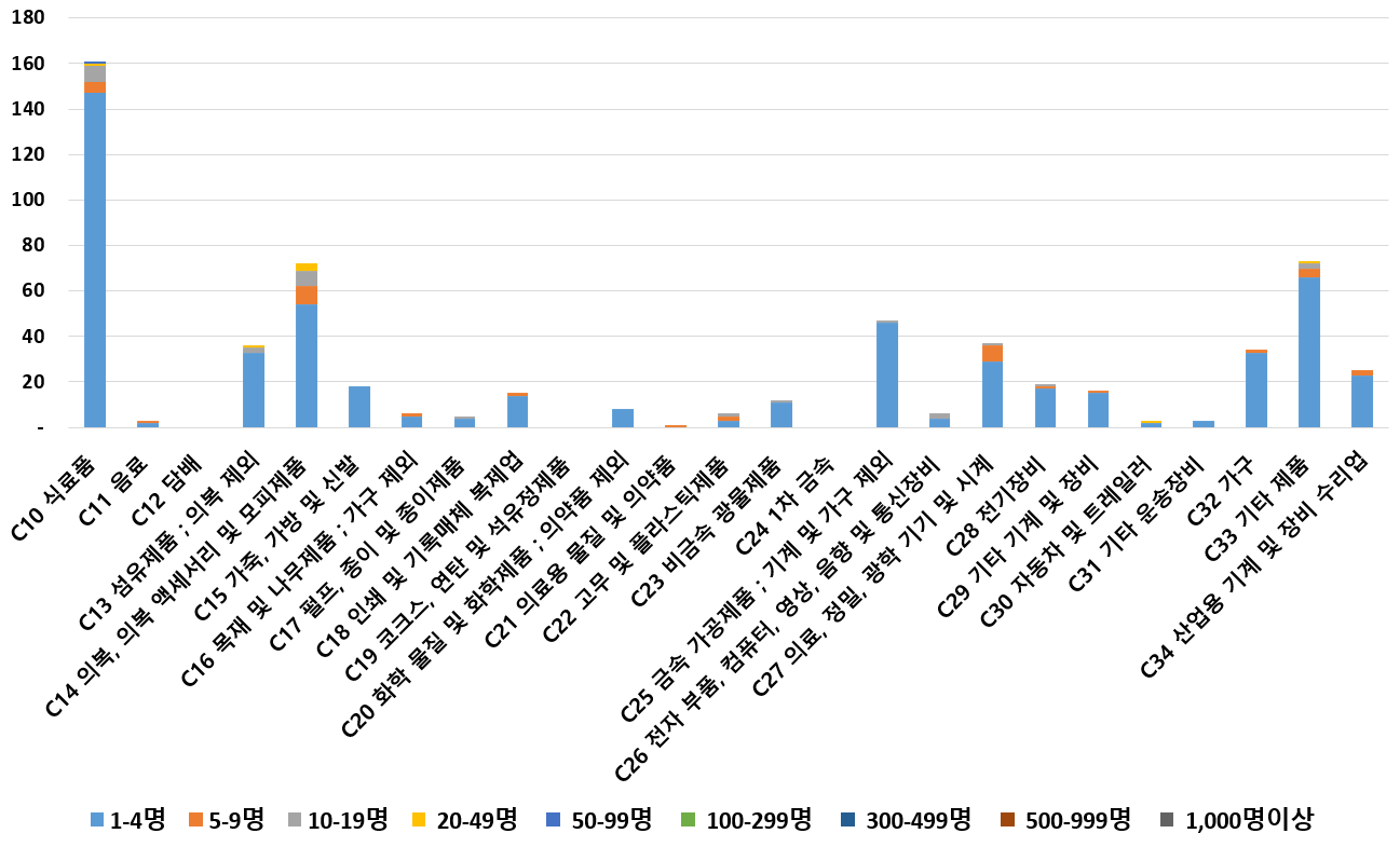 1) 업종별 · 근로자수별 제조사업체 현황
