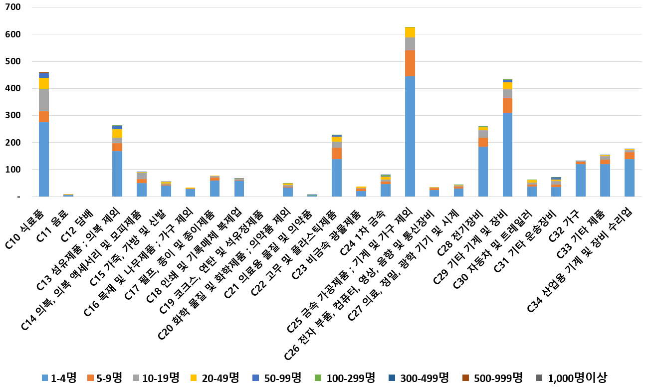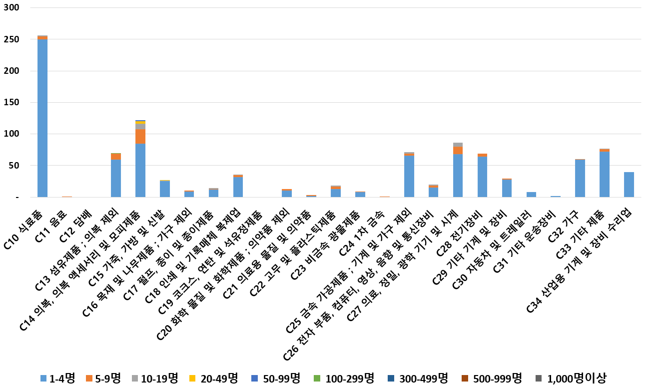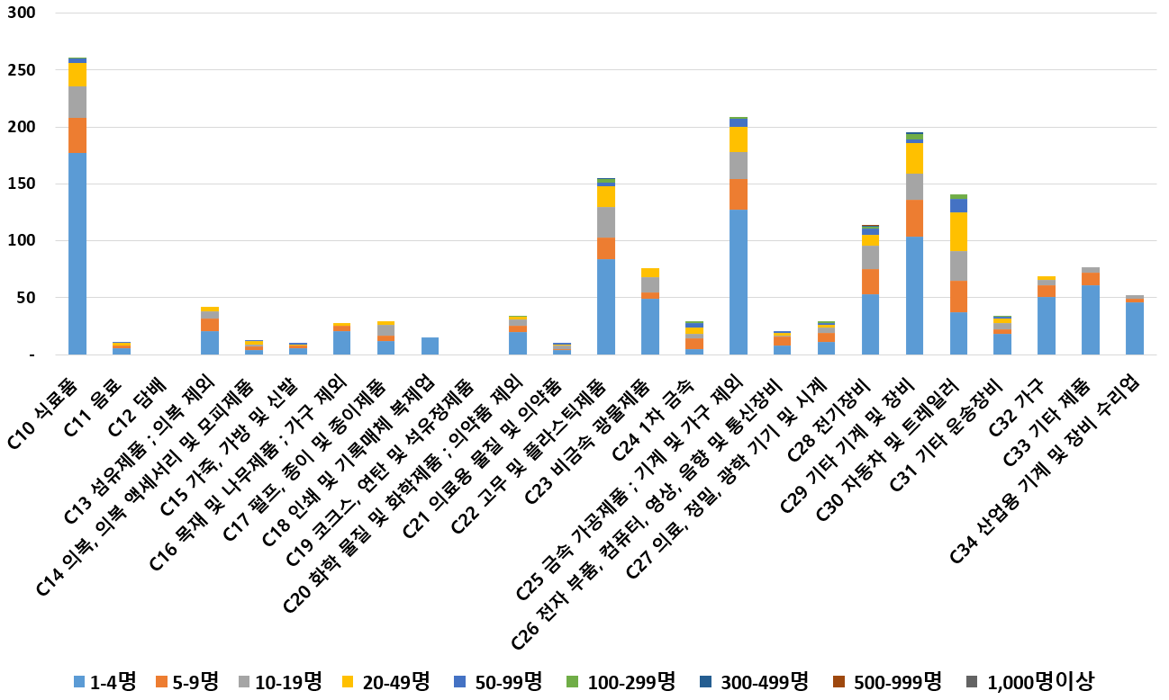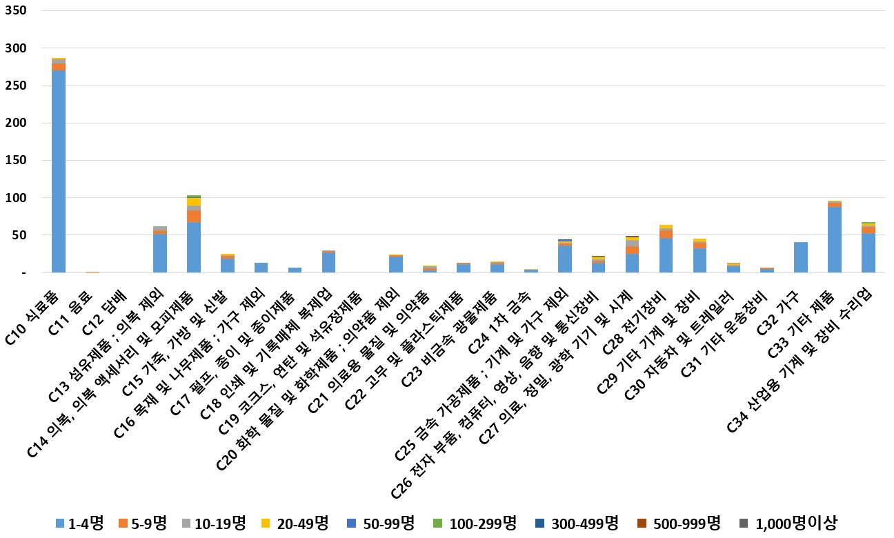 1) 업종별 · 근로자수별 제조사업체 현황