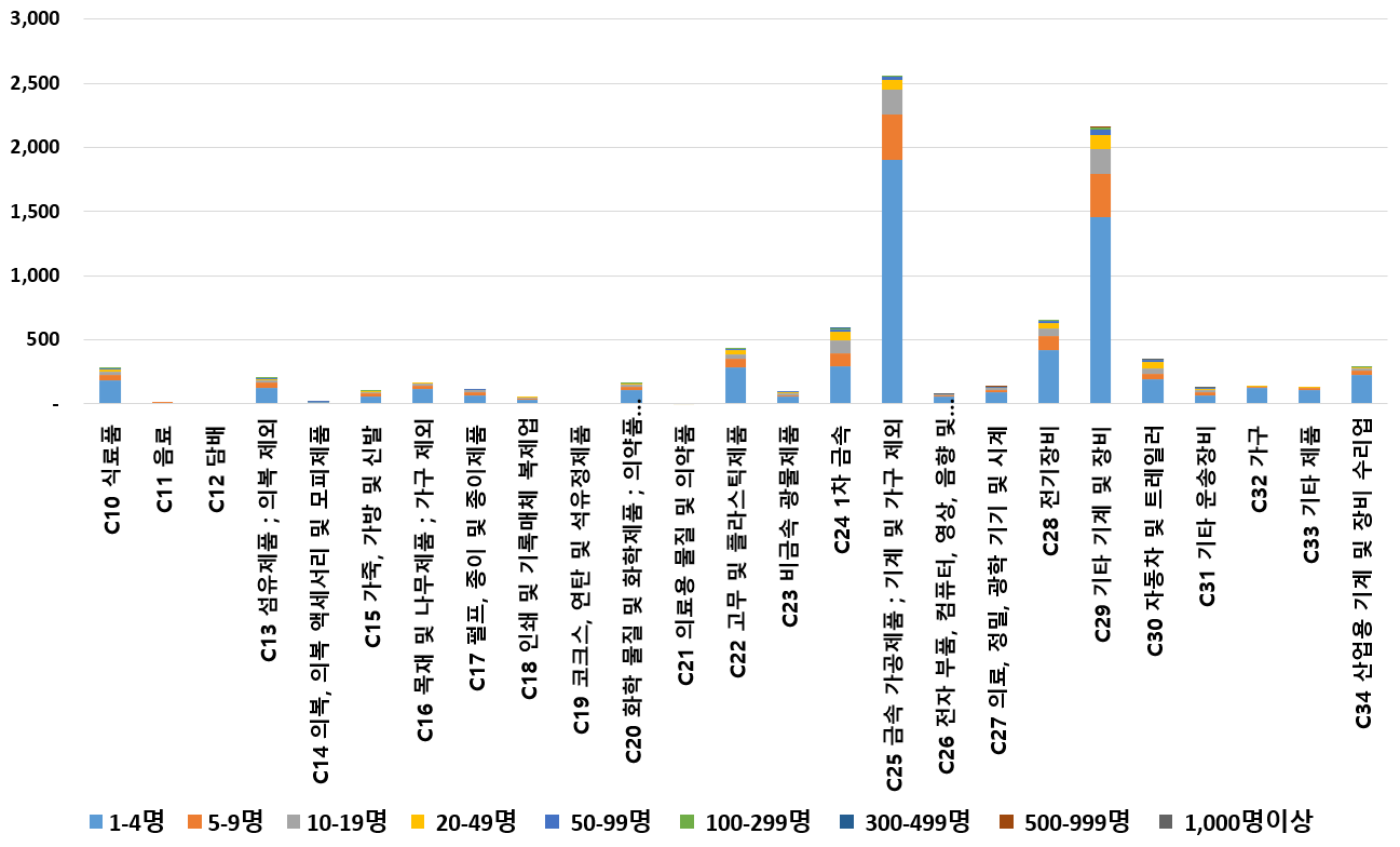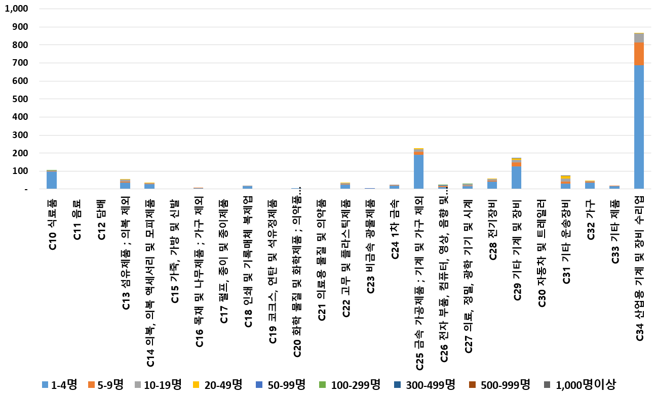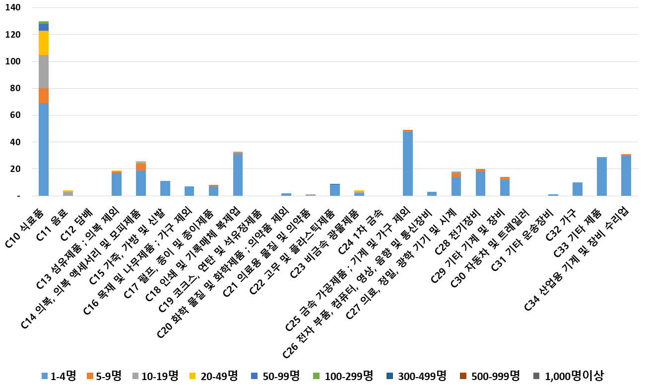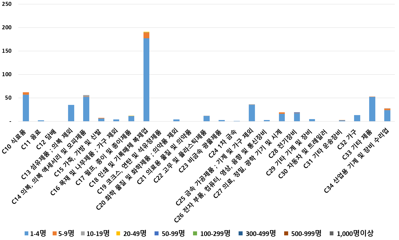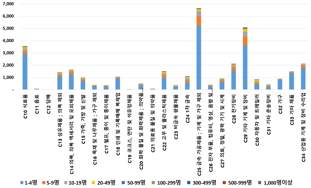 1) 업종별 · 근로자수별 제조사업체 현황