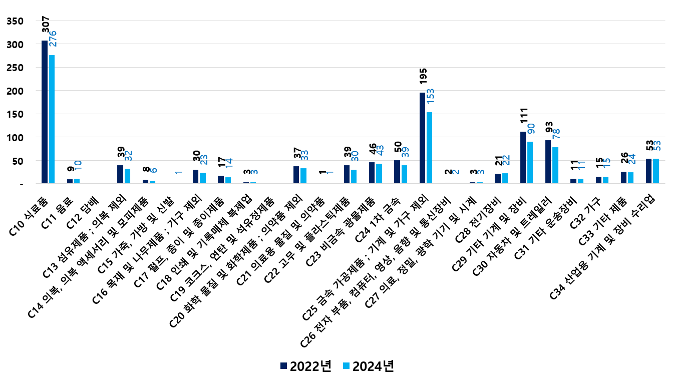 2) 2022 ~ 2024년 업종별 제조사업체 현황