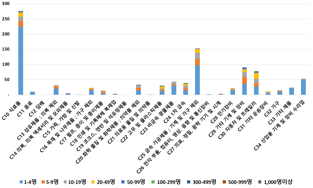 1) 업종별 · 근로자수별 제조사업체 현황
