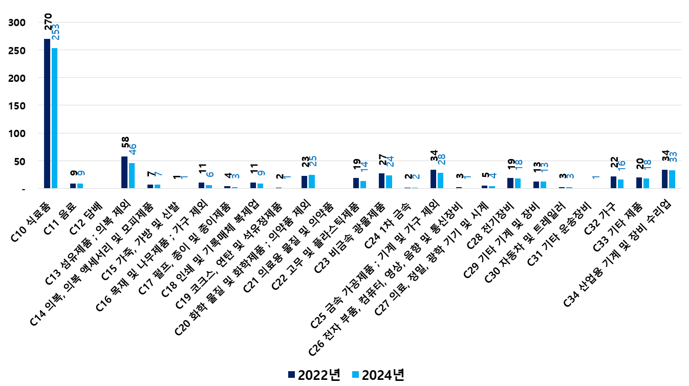 2) 2022 ~ 2024년 업종별 제조사업체 현황