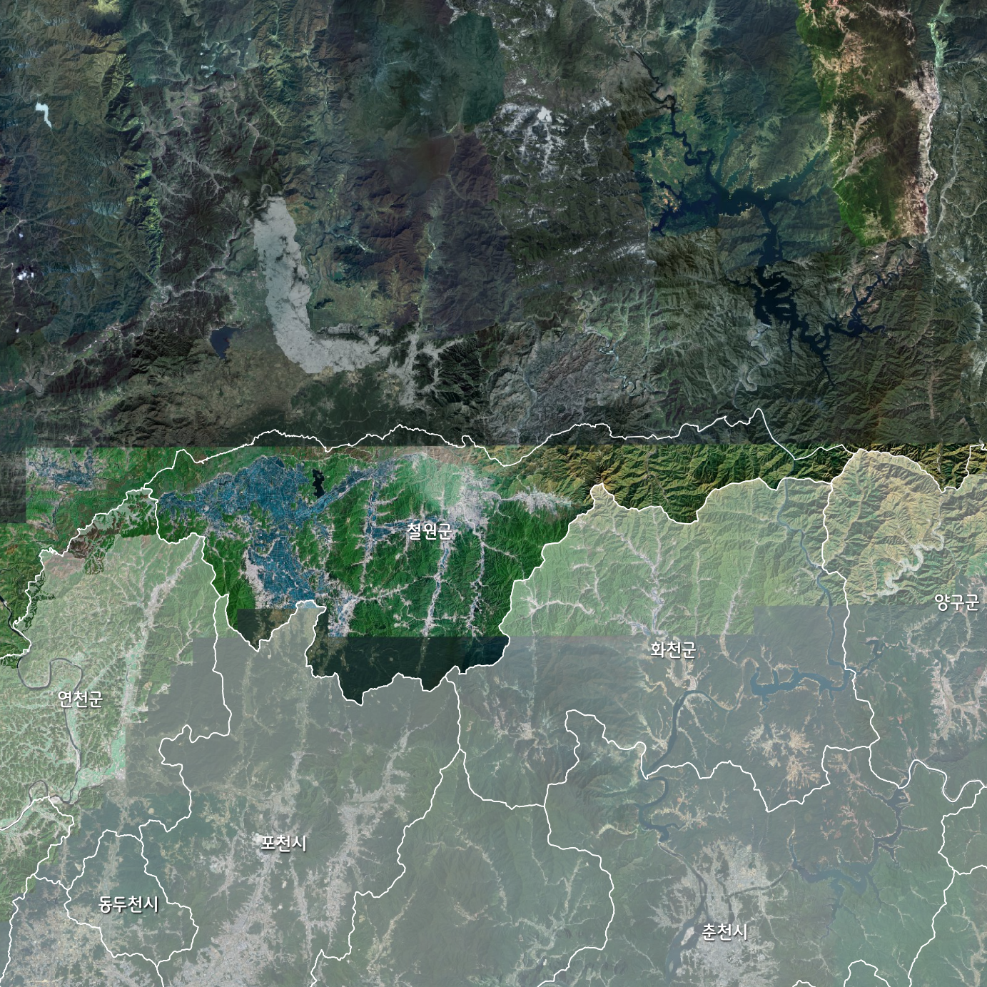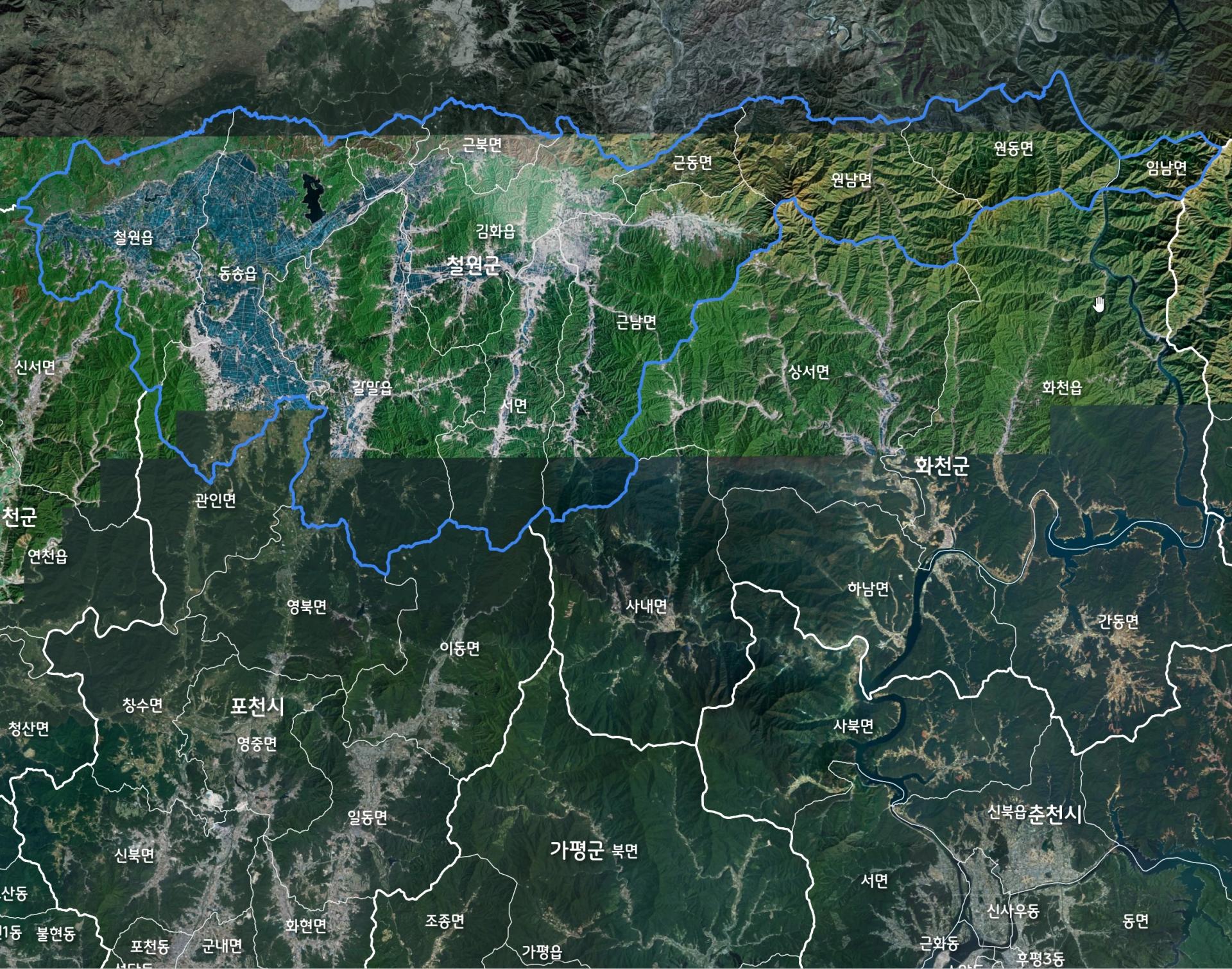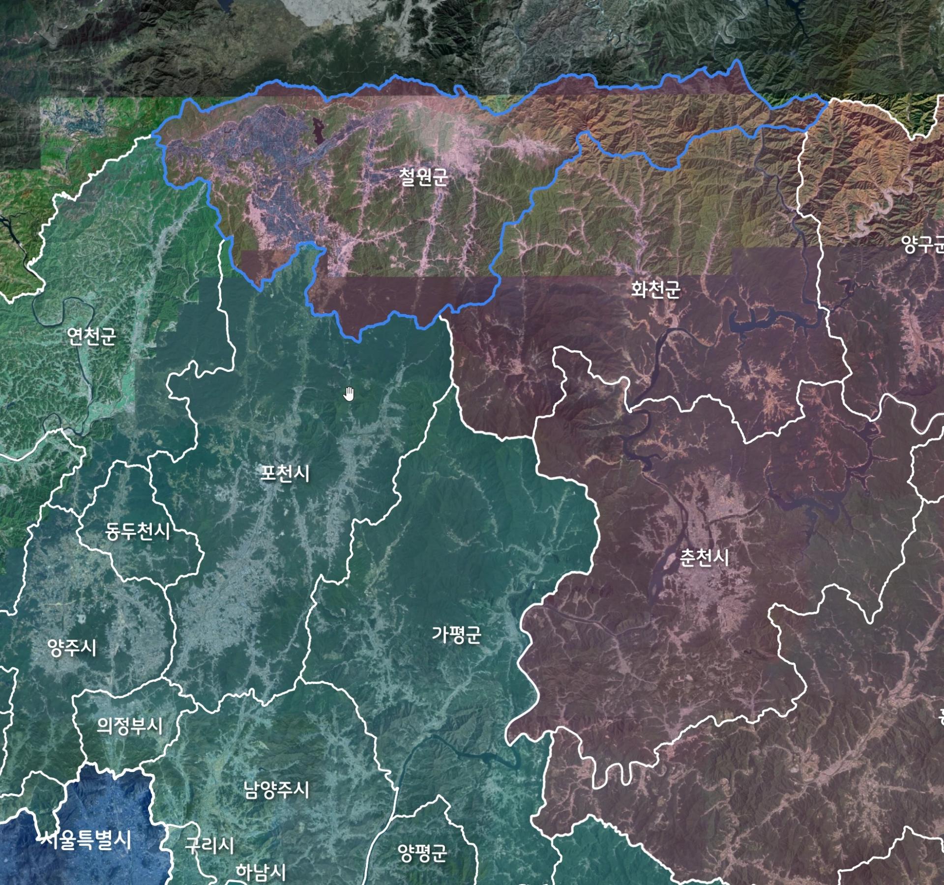 | 서울특별시 ( 605,214 ㎢*) | 강원 철원군 ( 890,128 ㎢, 서울 대비 147%) |