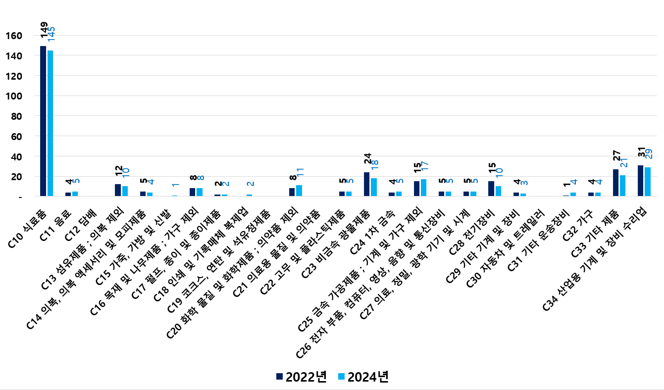 2) 2022 ~ 2024년 업종별 제조사업체 현황