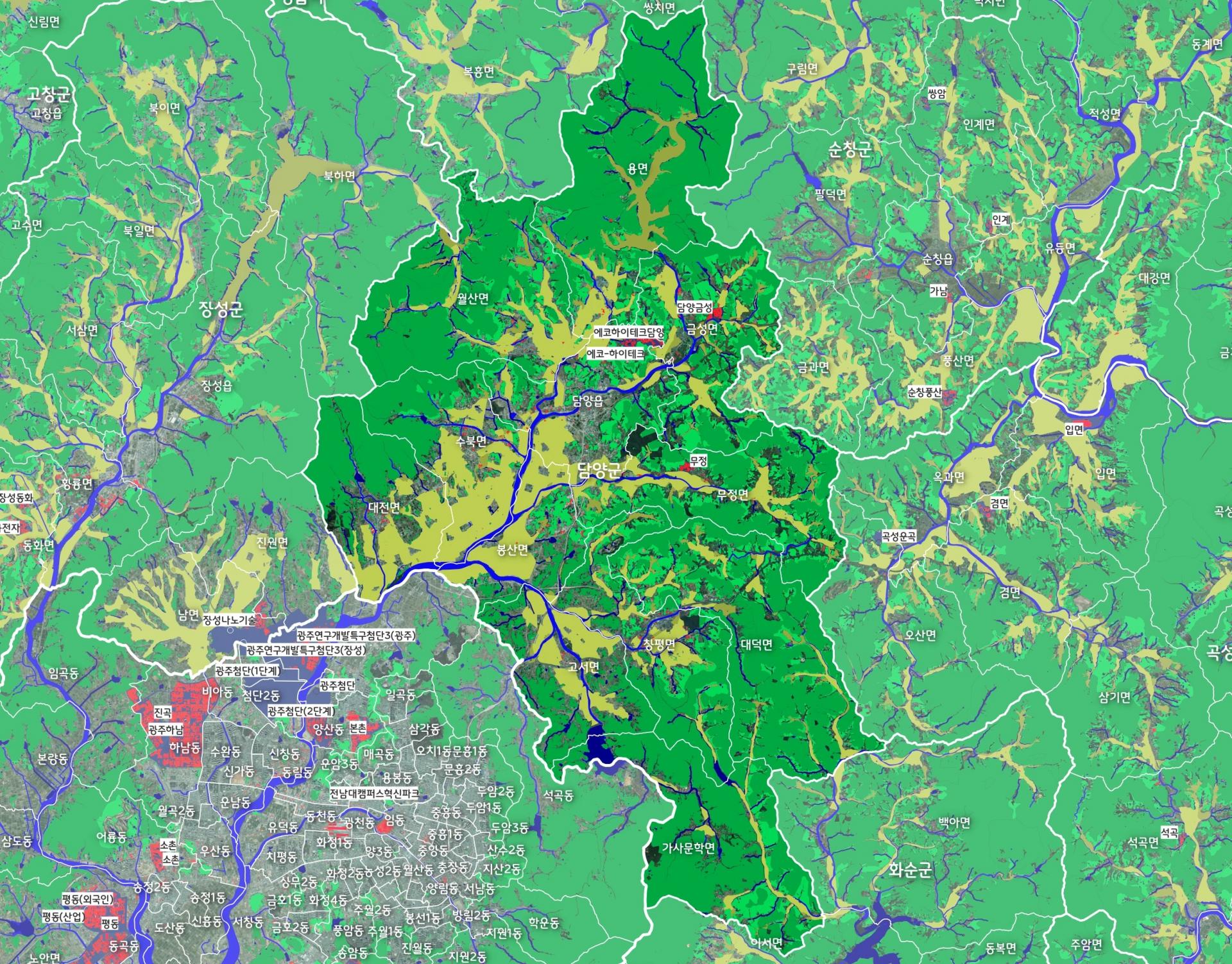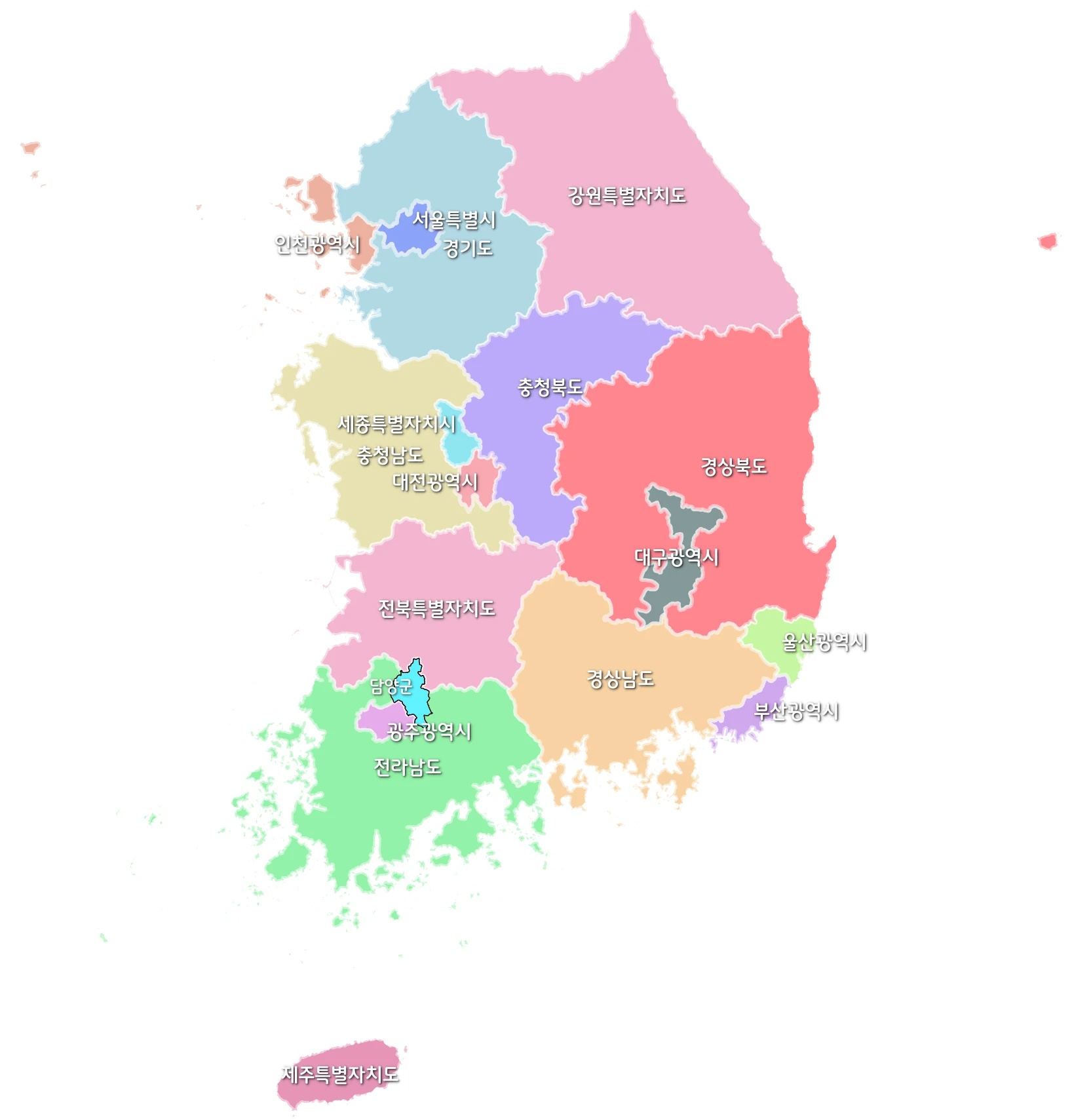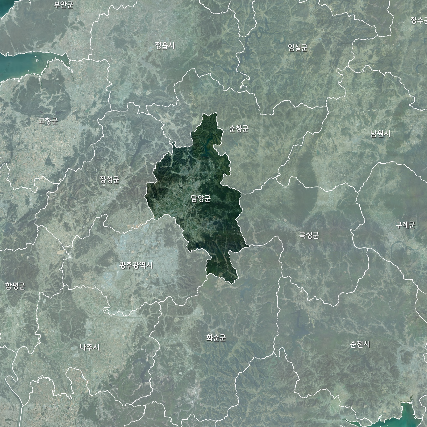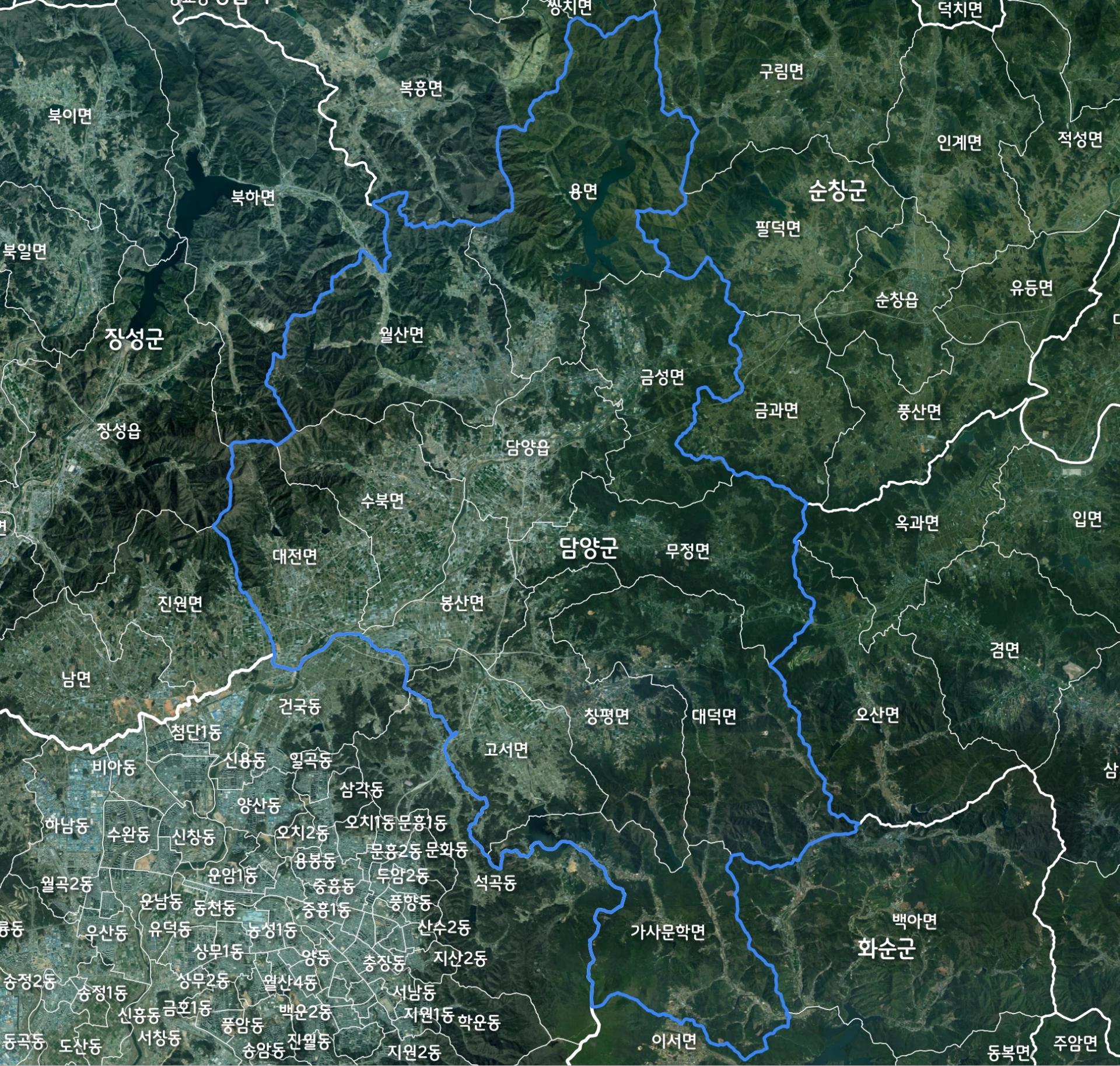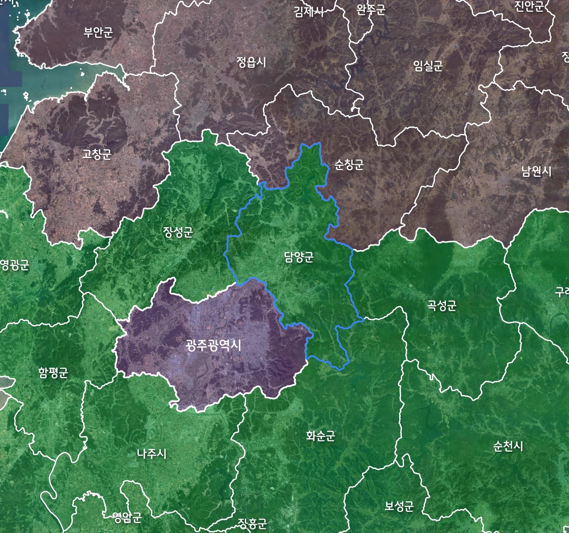 | 서울특별시 ( 605,214 ㎢*) | 전남 담양군 ( 455,074 ㎢, 서울 대비 75%) |