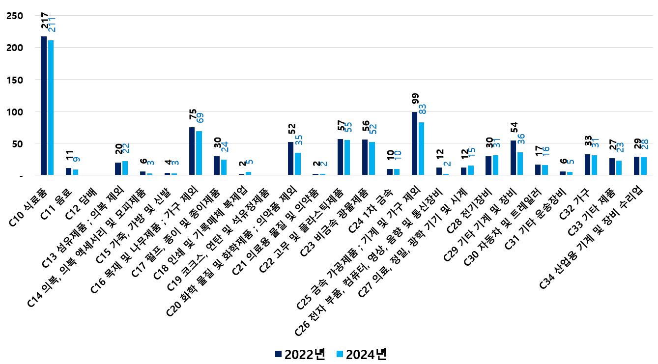 2) 2022 ~ 2024년 업종별 제조사업체 현황