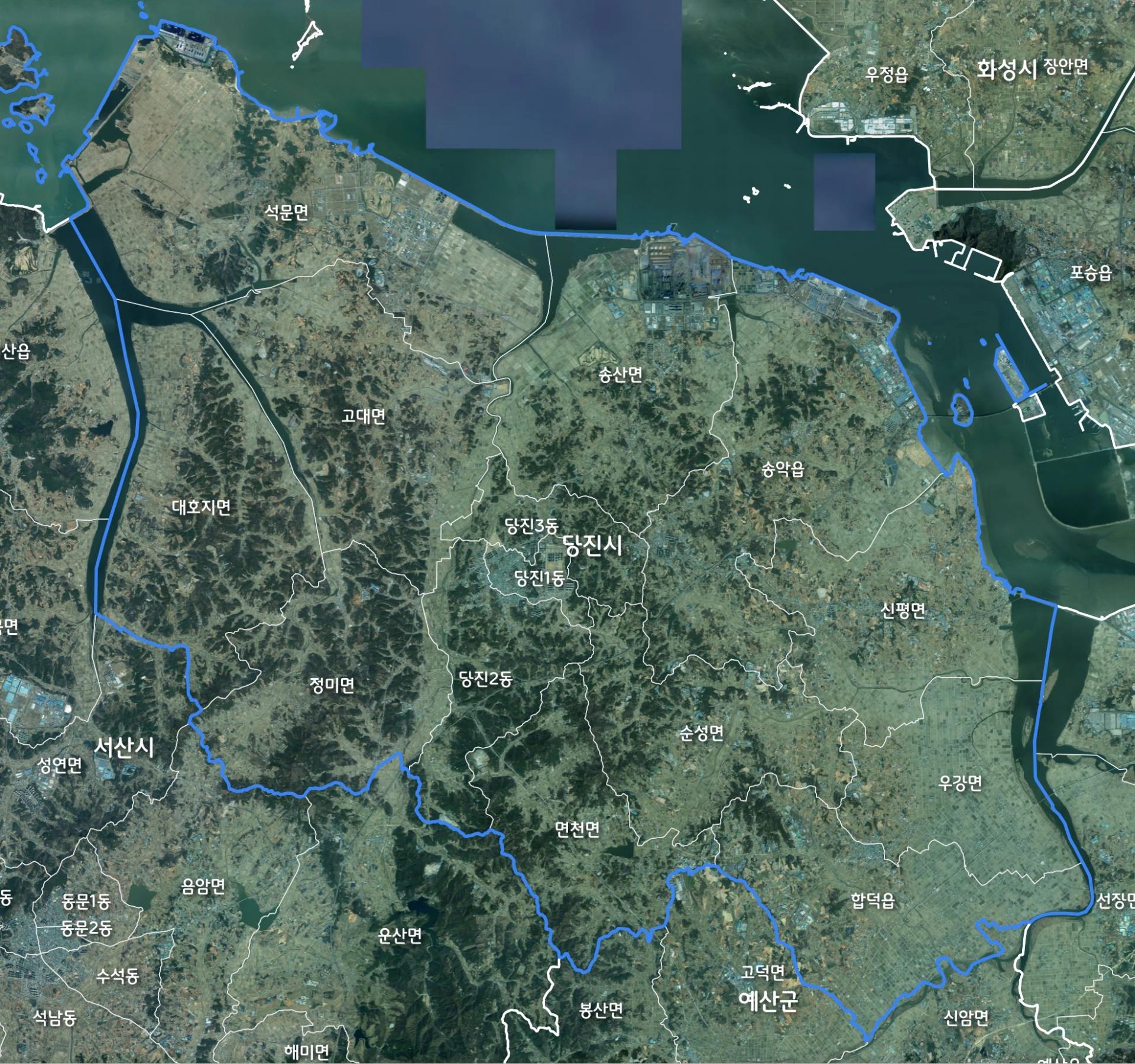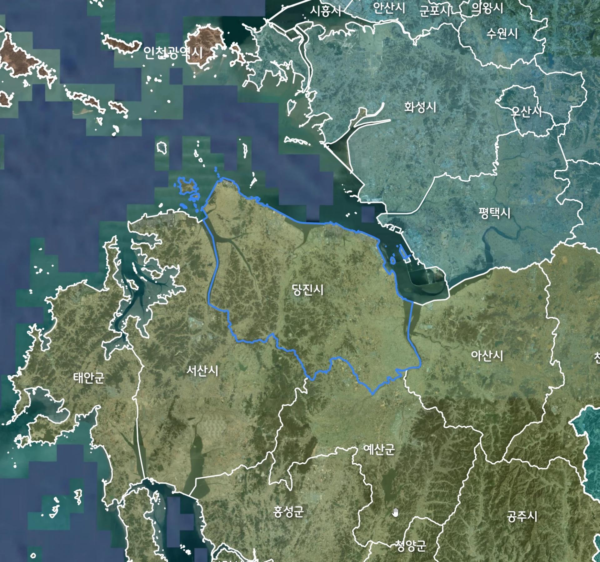 | 서울특별시 ( 605,214 ㎢*) | 충남 당진시 ( 705,634 ㎢, 서울 대비 117%) |