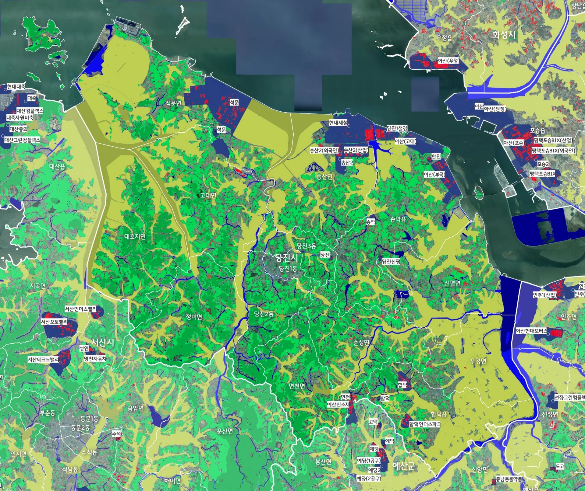 * (참고) 흰색 네모 배경이 있는 글씨는 산업단지임. 새로 지정된 일부 산업단지는 미표시