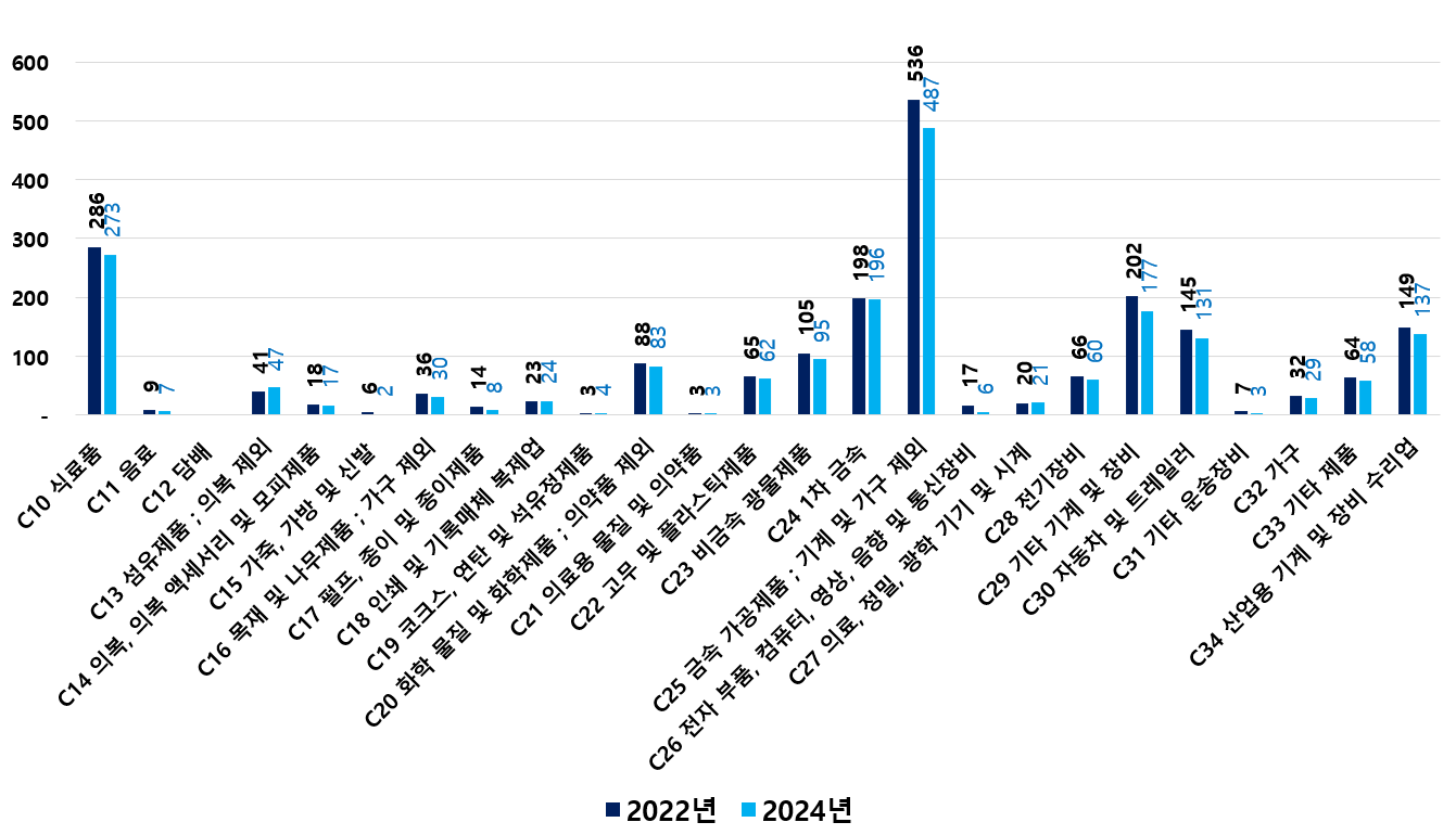 2) 2022 ~ 2024년 업종별 제조사업체 현황