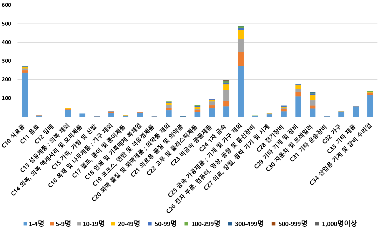 1) 업종별 · 근로자수별 제조사업체 현황