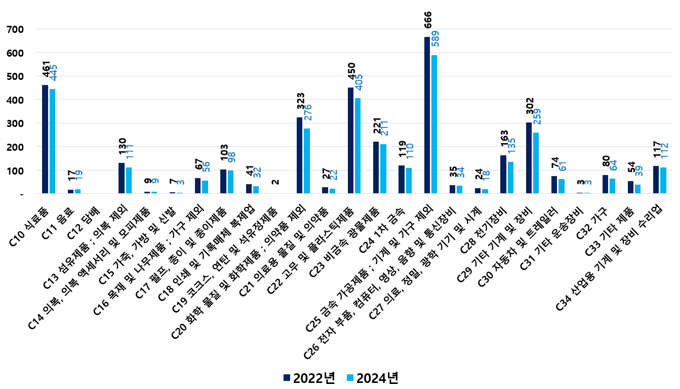 2) 2022 ~ 2024년 업종별 제조사업체 현황