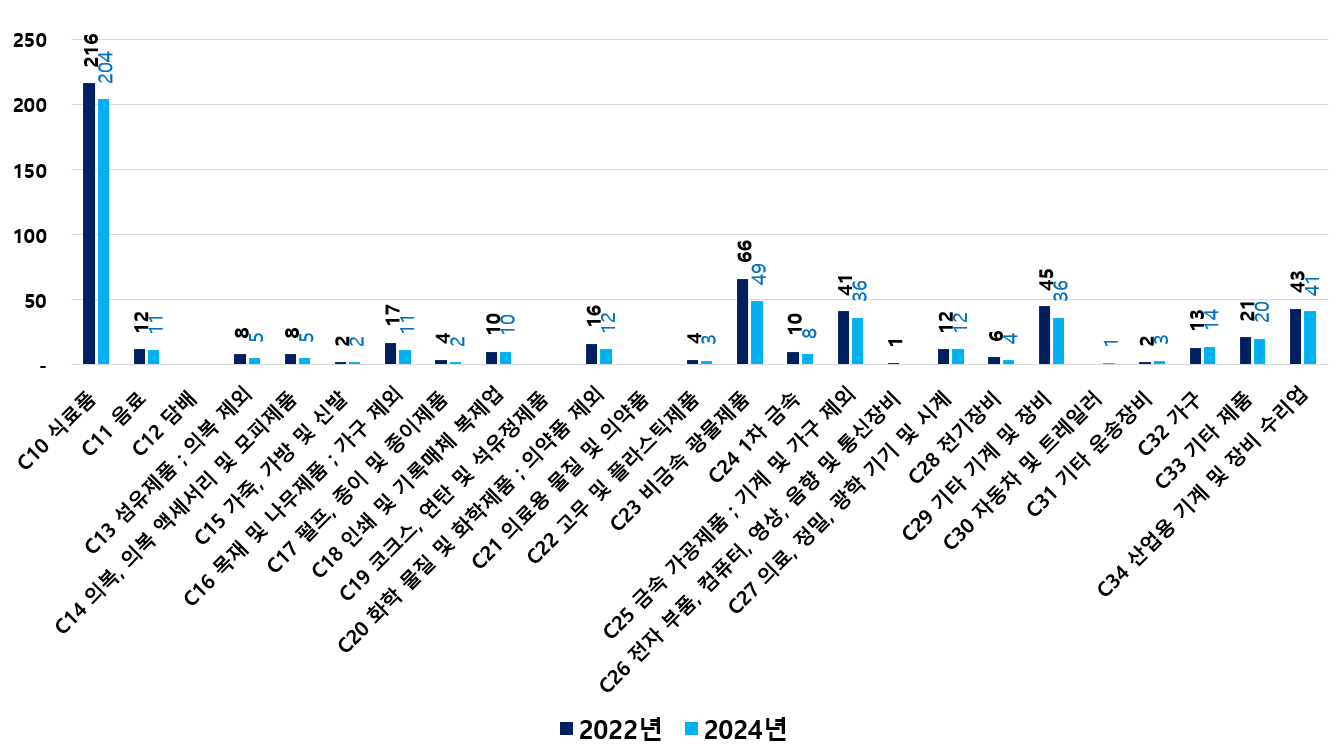 2) 2022 ~ 2024년 업종별 제조사업체 현황