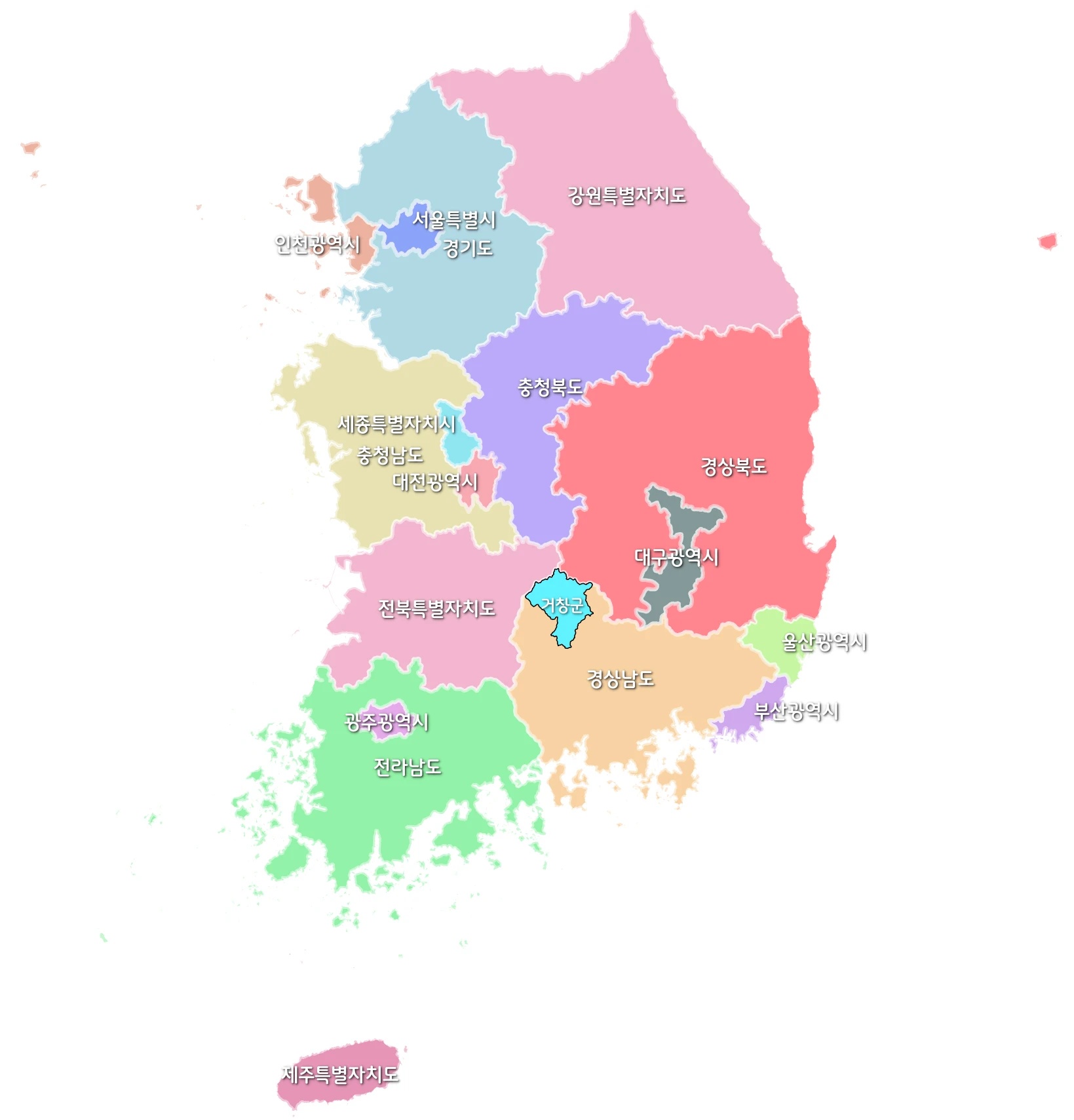 * (참고) 흰색 네모 배경이 있는 글씨는 산업단지임. 새로 지정된 일부 산업단지는 미표시