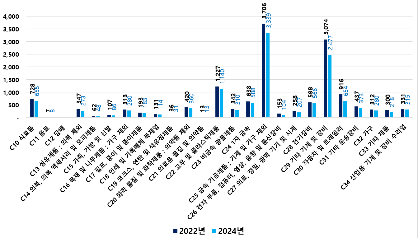 2) 2022 ~ 2024년 업종별 제조사업체 현황