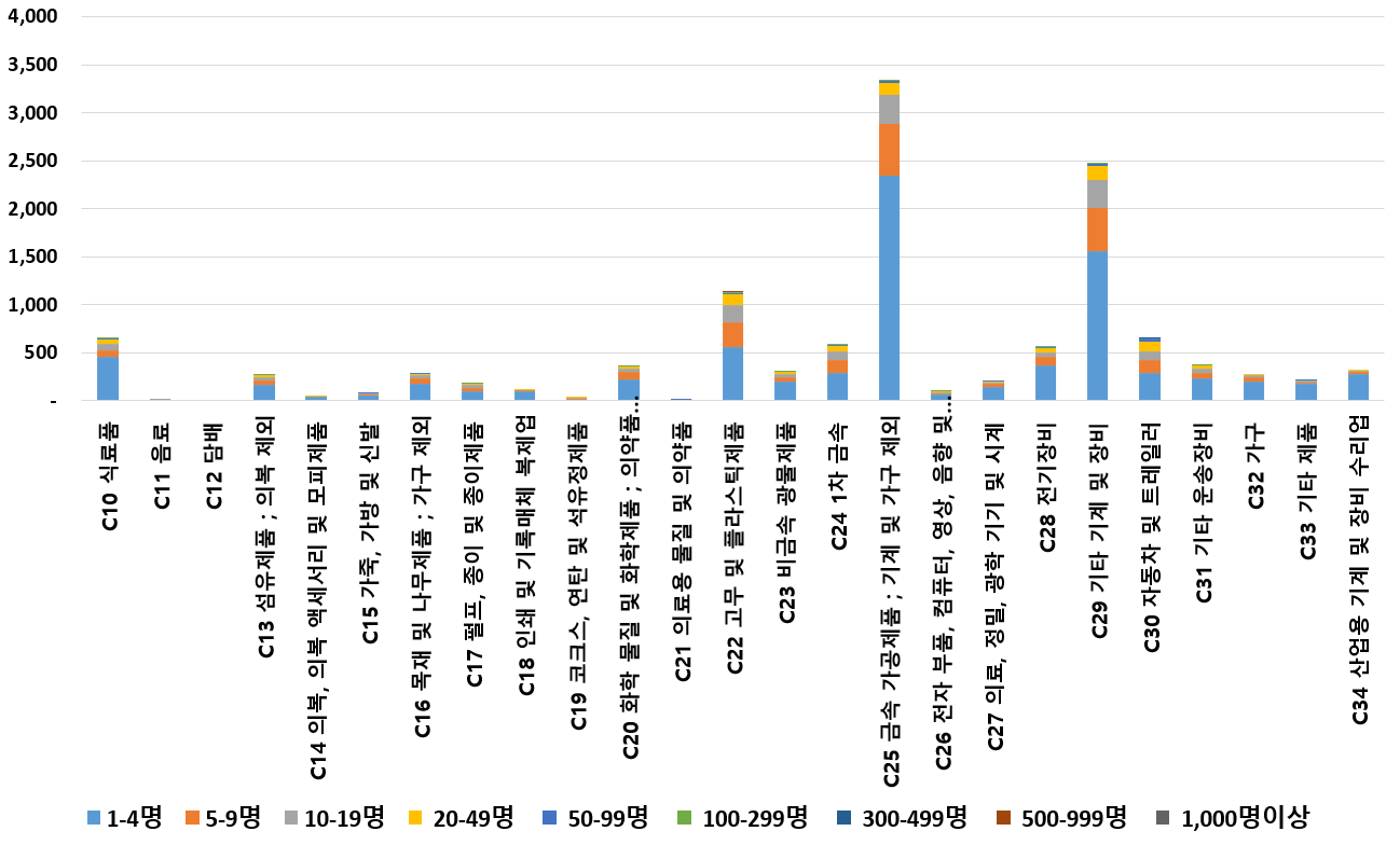 1) 업종별 · 근로자수별 제조사업체 현황