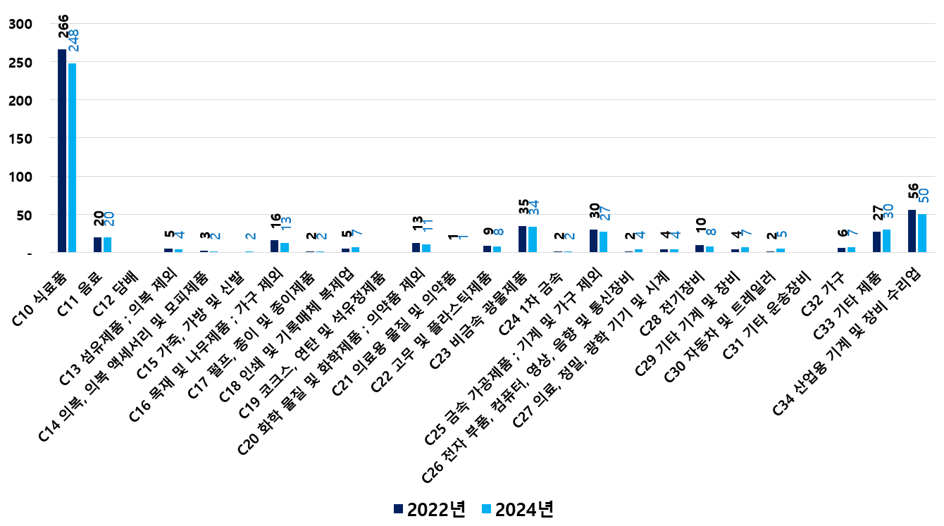 2) 2022 ~ 2024년 업종별 제조사업체 현황