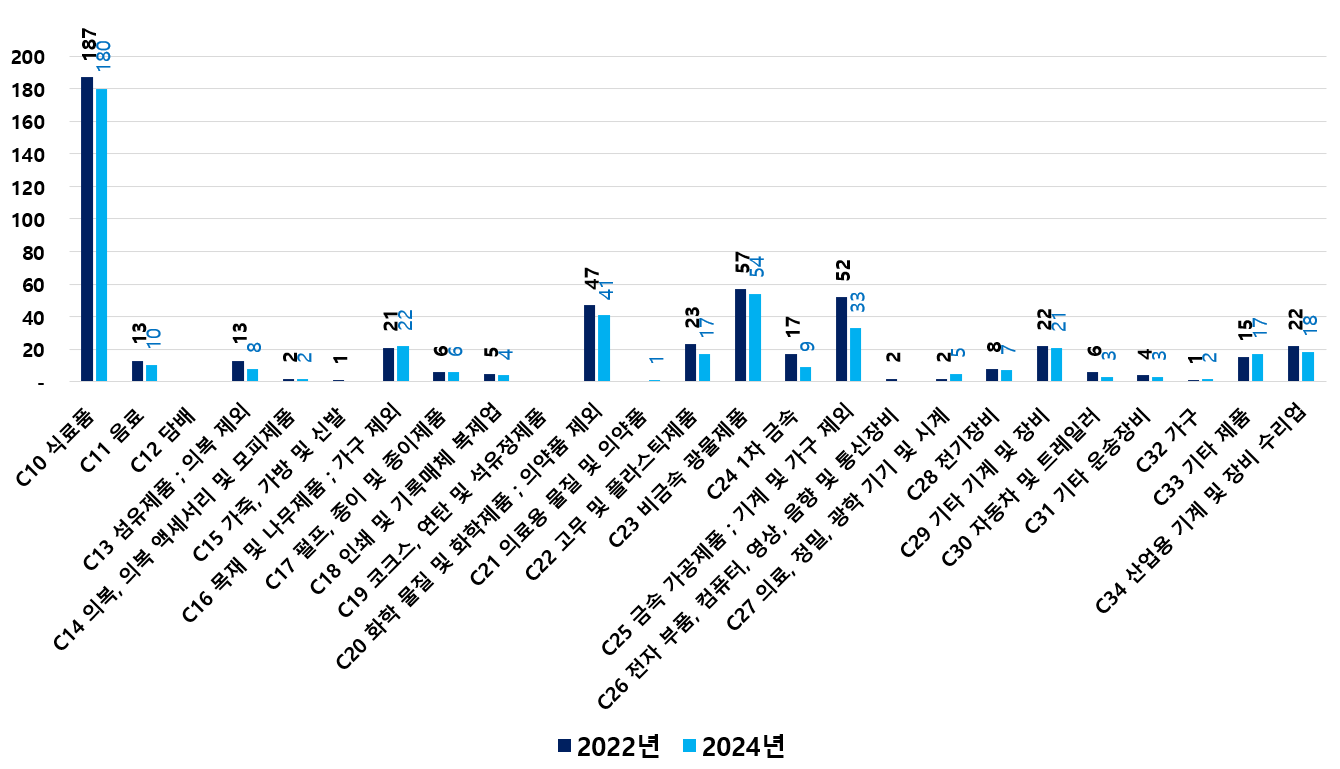 2) 2022 ~ 2024년 업종별 제조사업체 현황