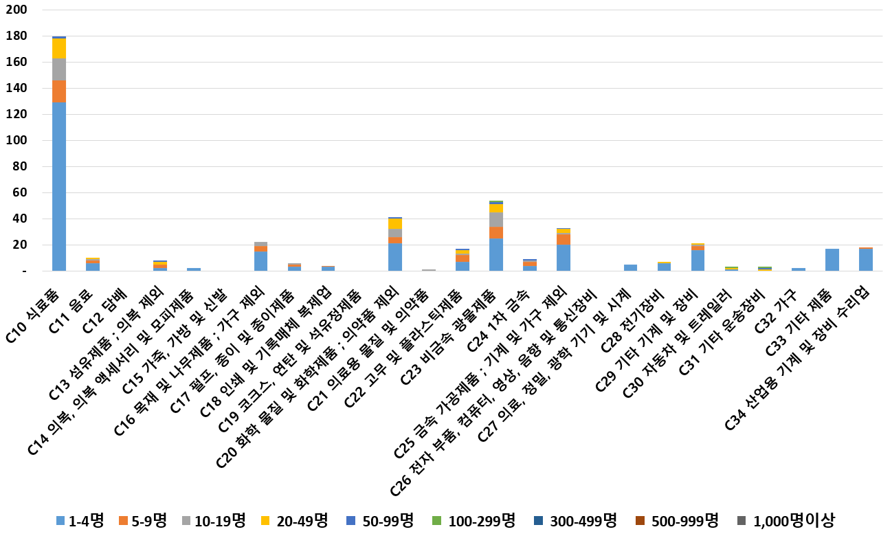 1) 업종별 · 근로자수별 제조사업체 현황