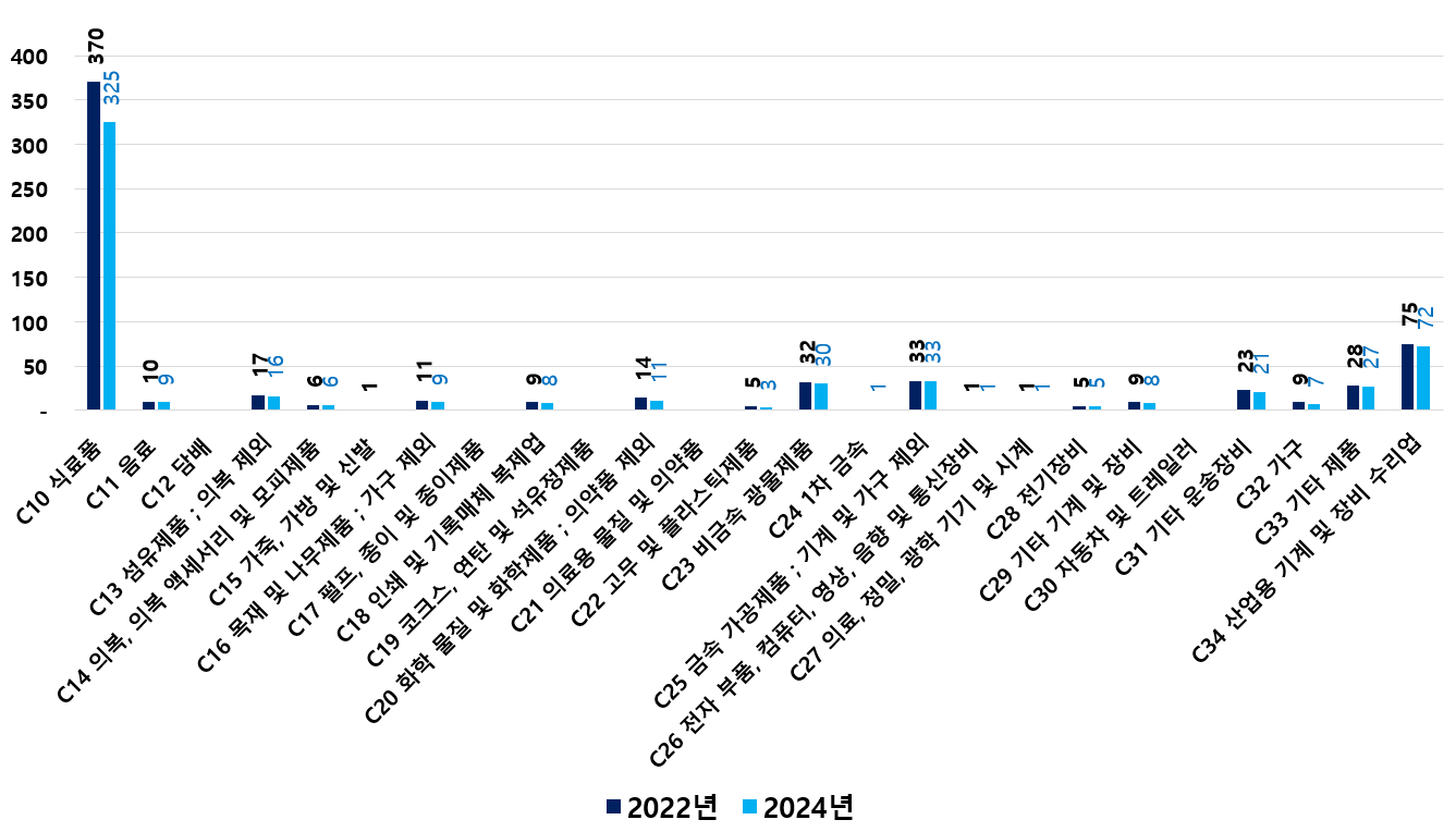 2) 2022 ~ 2024년 업종별 제조사업체 현황