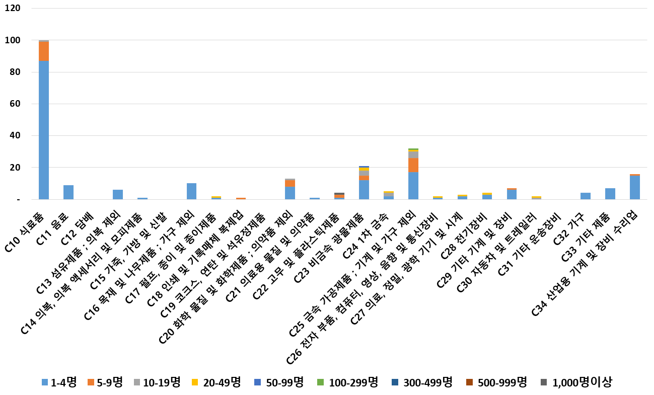 1) 업종별 · 근로자수별 제조사업체 현황