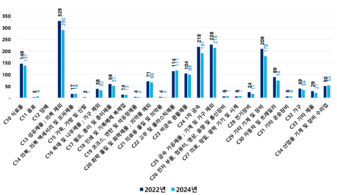 2) 2022 ~ 2024년 업종별 제조사업체 현황