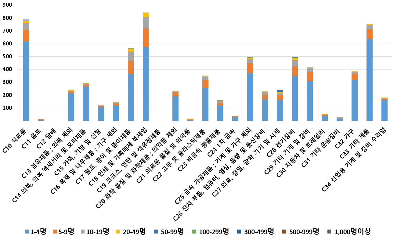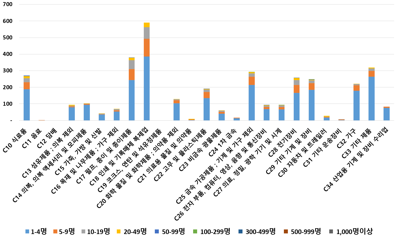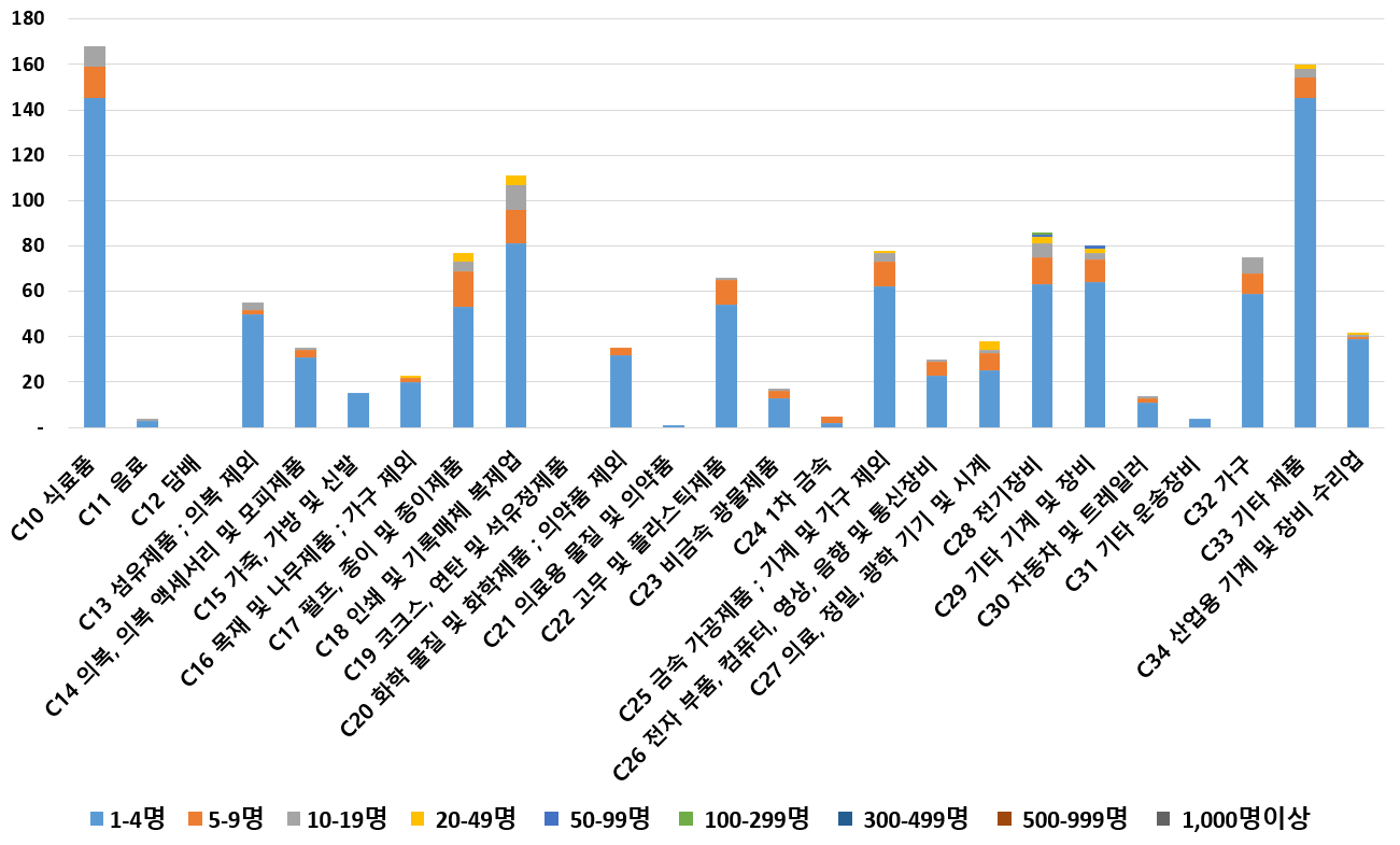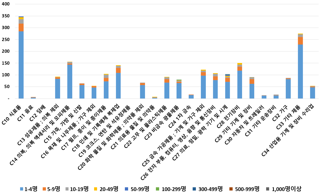 1) 업종별 · 근로자수별 제조사업체 현황