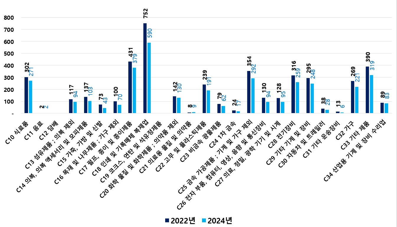 2) 2022 ~ 2024년 업종별 제조사업체 현황