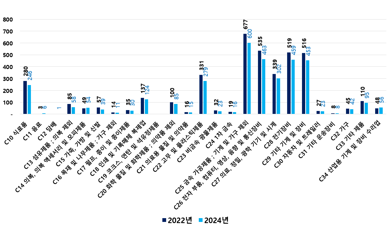 2) 2022 ~ 2024년 업종별 제조사업체 현황