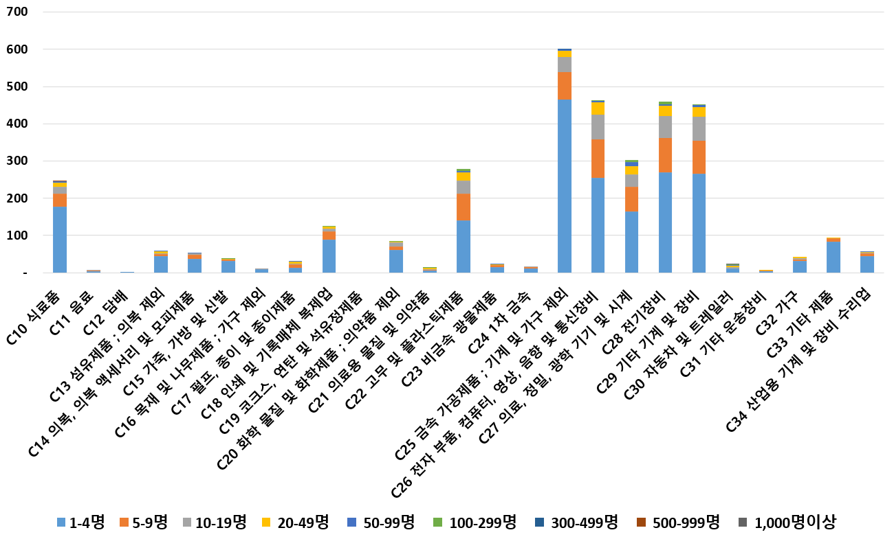 1) 업종별 · 근로자수별 제조사업체 현황