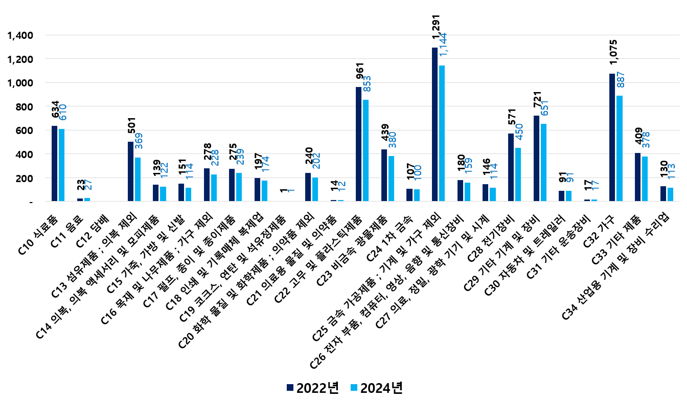 2) 2022 ~ 2024년 업종별 제조사업체 현황