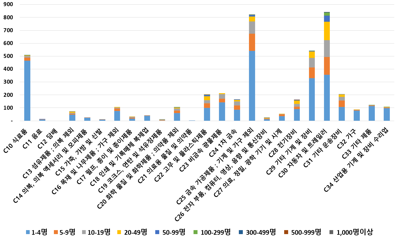 1) 업종별 · 근로자수별 제조사업체 현황