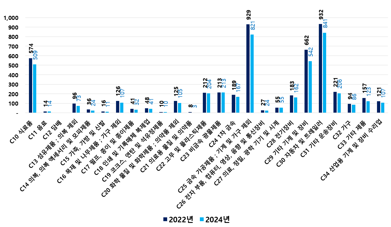 2) 2022 ~ 2024년 업종별 제조사업체 현황