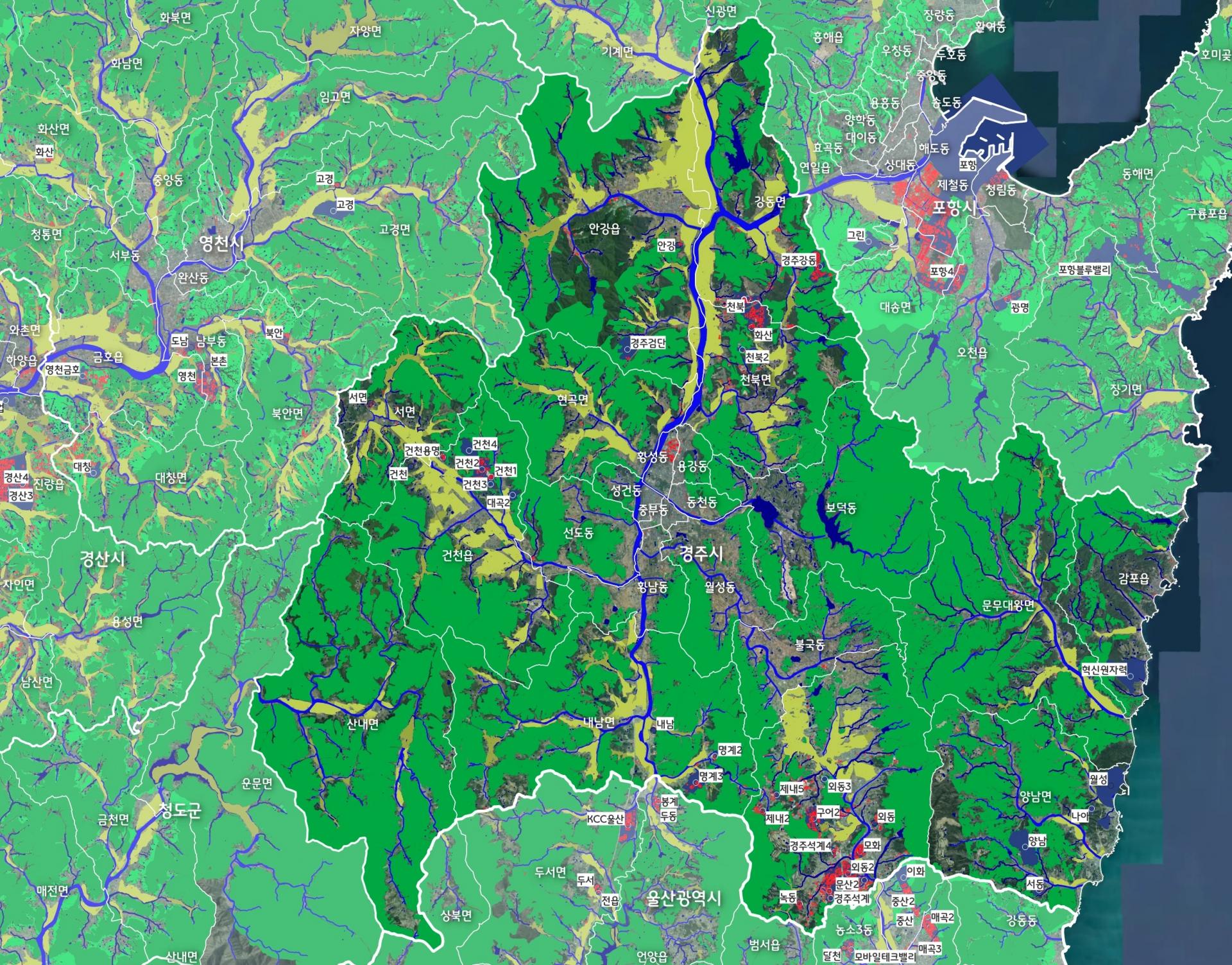 * (참고) 흰색 네모 배경이 있는 글씨는 산업단지임. 새로 지정된 일부 산업단지는 미표시
