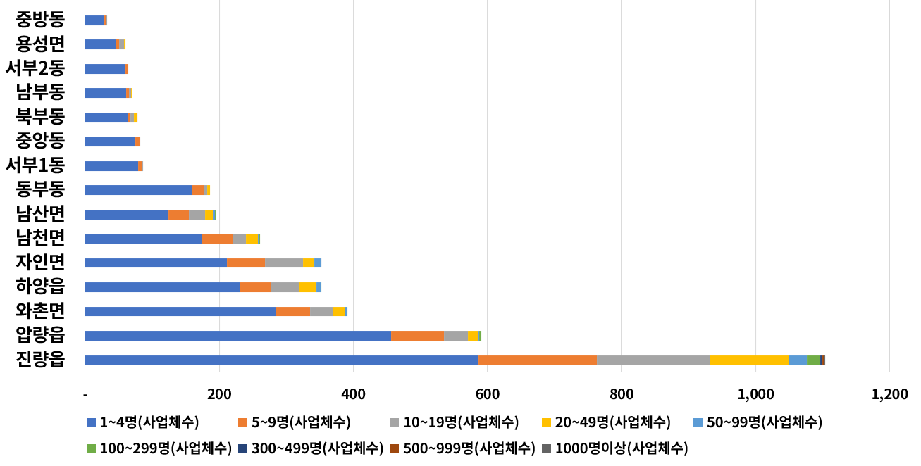 *** 공장 건축물이 없는 읍 · 면 · 동은 보통 반찬 등 식료품 제조, 인쇄소, 간판 제작소, 철공소 등 소규모 제조업이 '제조업소(2종근린생활시설 건축물의 한 용도)'에서 사업함. 수도권, 광역시 등에는 제조업소 외 '지식산업센터(구 아파트형 공장)'에도 다수의 제조사업체 있음