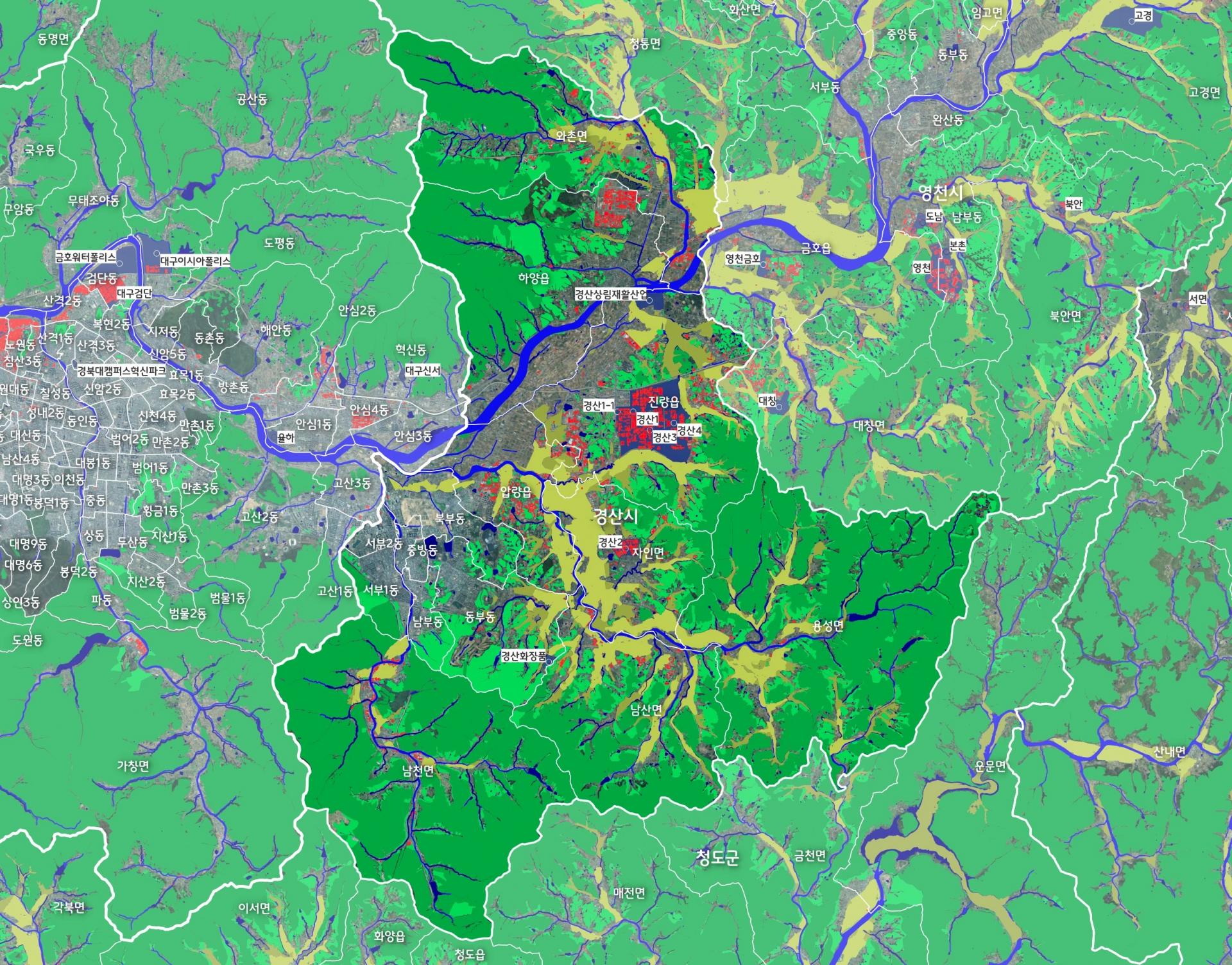 * (참고) 흰색 네모 배경이 있는 글씨는 산업단지임. 새로 지정된 일부 산업단지는 미표시