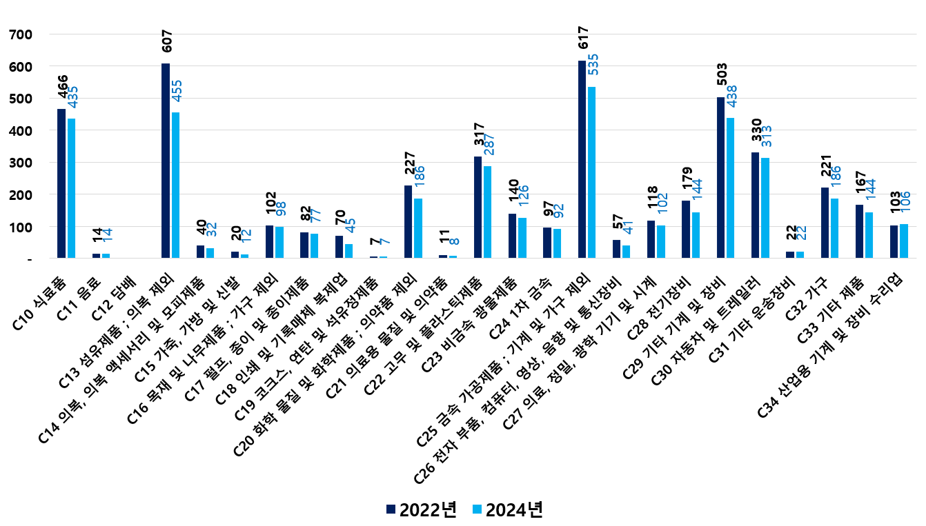 2) 2022 ~ 2024년 업종별 제조사업체 현황