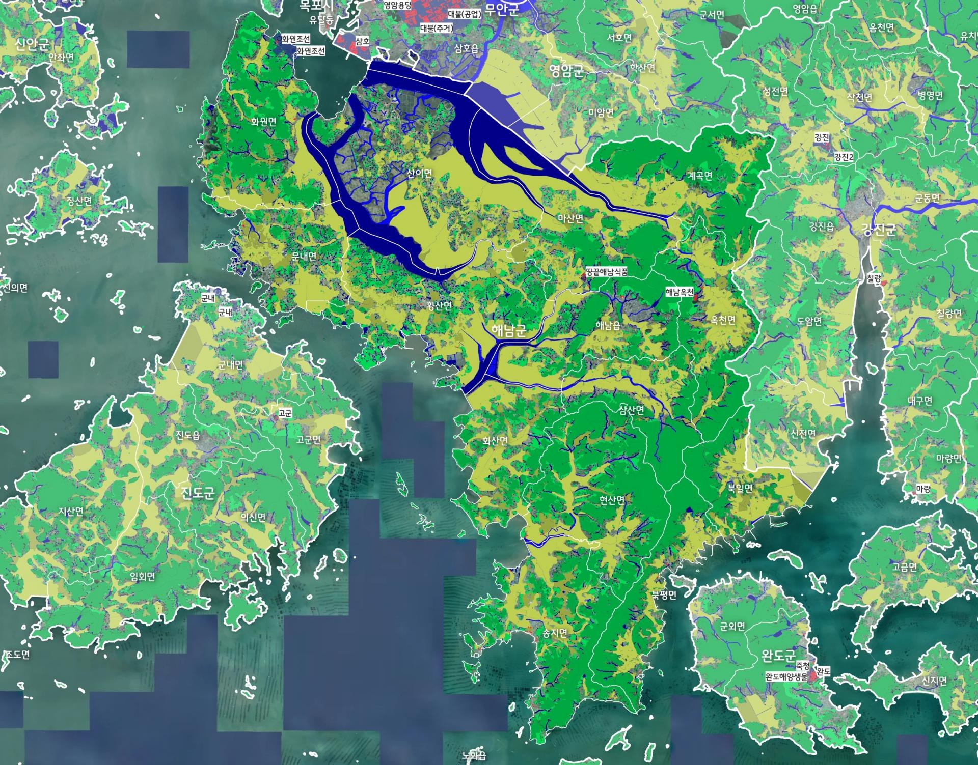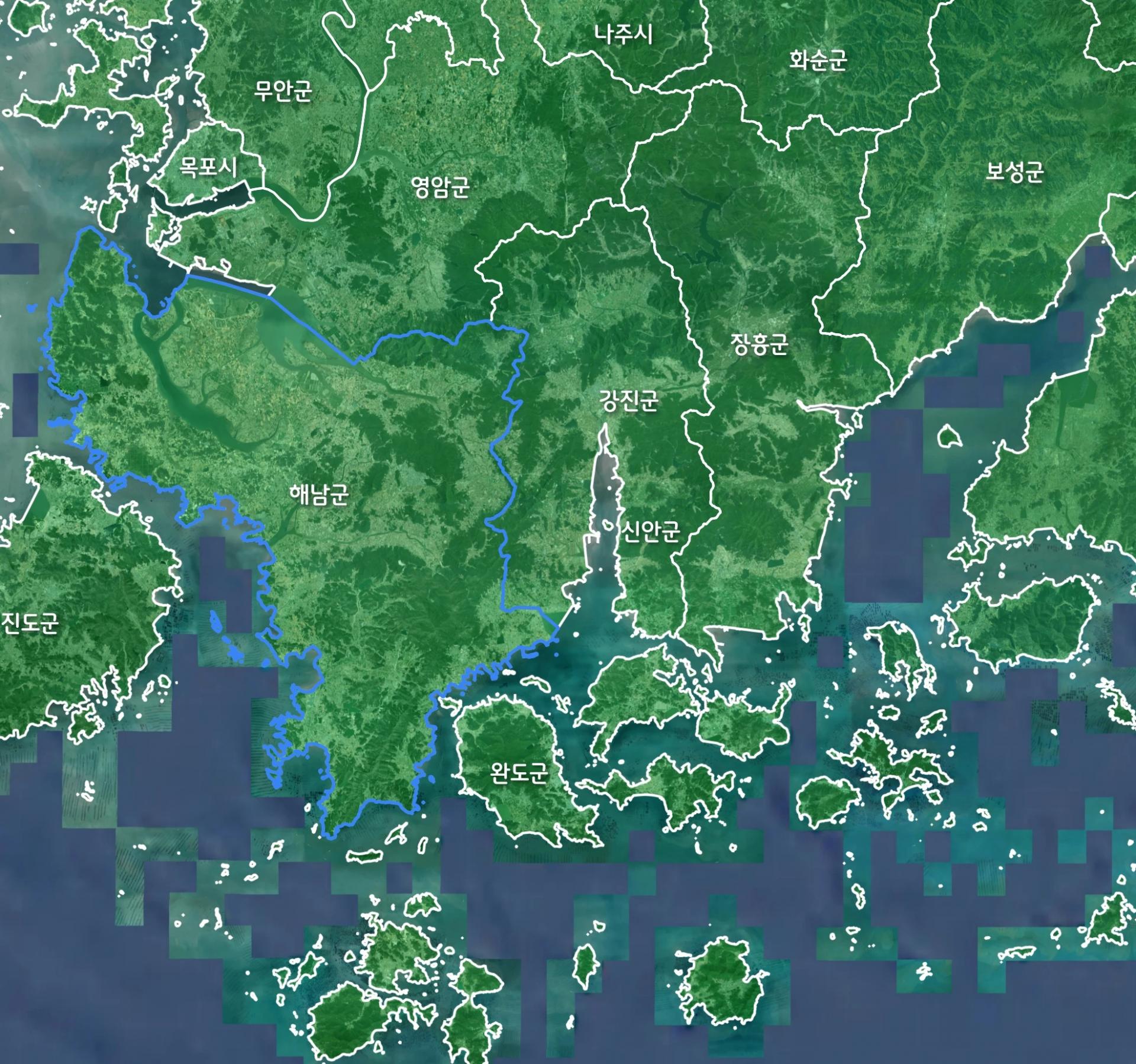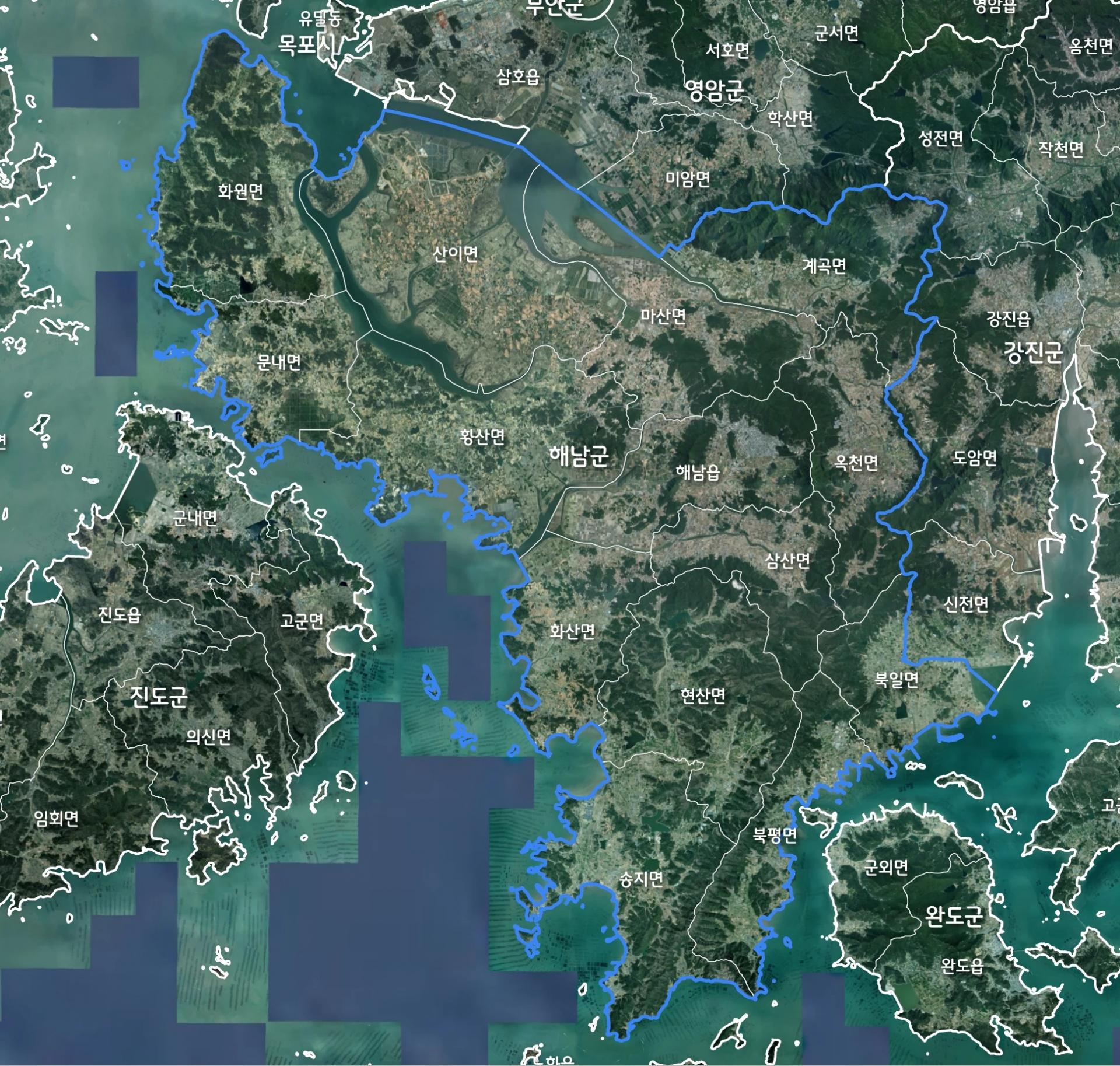 | 서울특별시 ( 605,214 ㎢*) | 전남 해남군 ( 1,045,155 ㎢, 서울 대비 173%) |