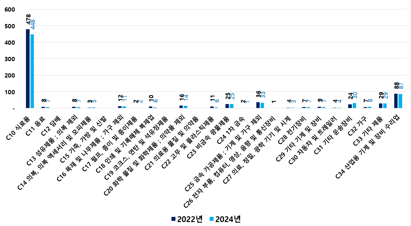 2) 2022 ~ 2024년 업종별 제조사업체 현황