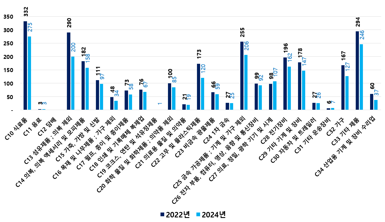 2) 2022 ~ 2024년 업종별 제조사업체 현황
