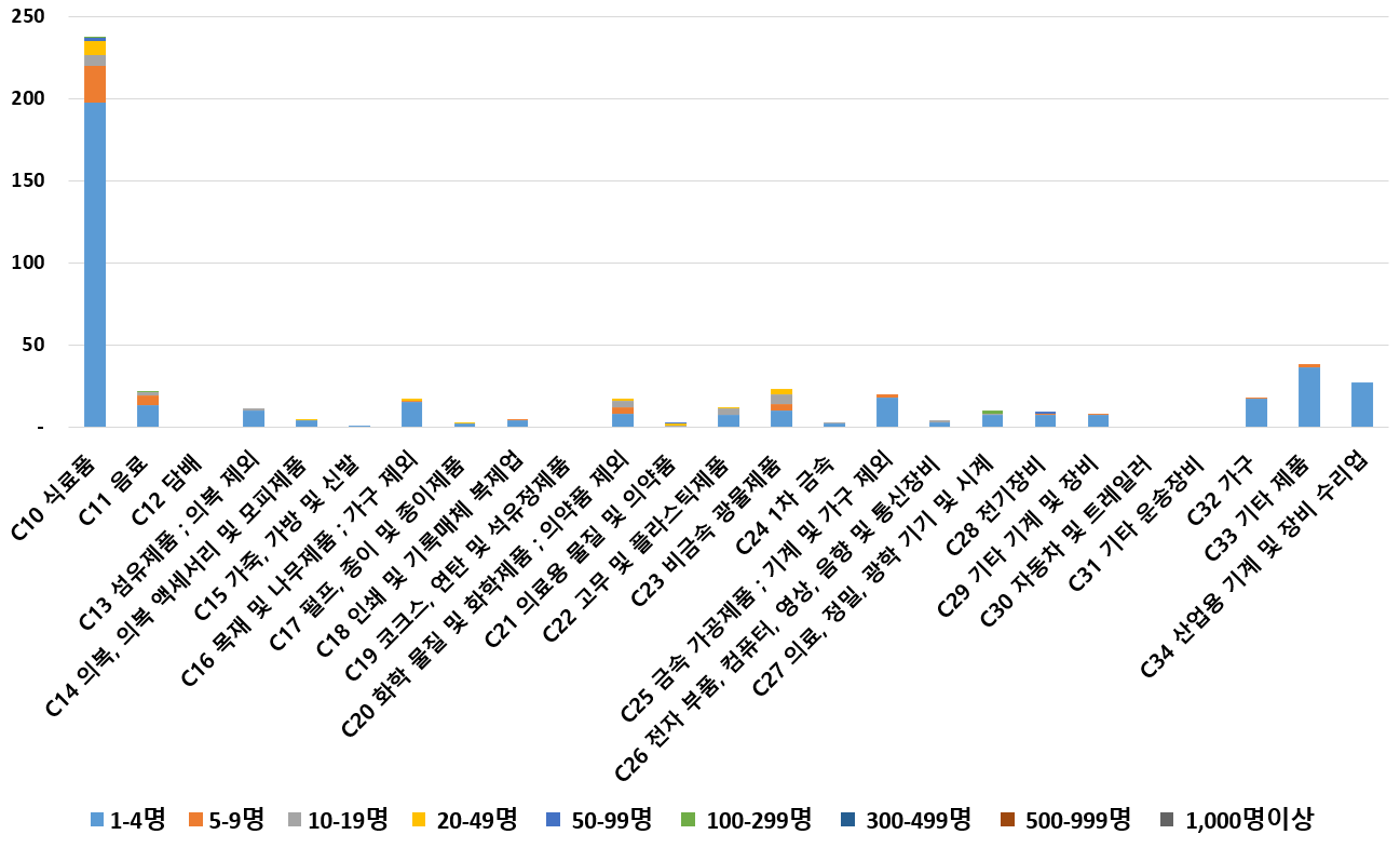 1) 업종별 · 근로자수별 제조사업체 현황