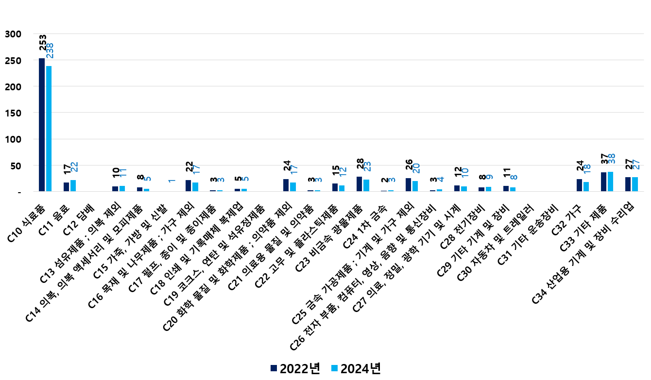 2) 2022 ~ 2024년 업종별 제조사업체 현황