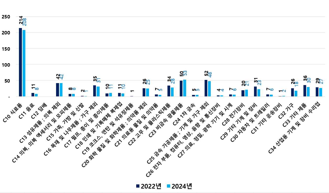2) 2022 ~ 2024년 업종별 제조사업체 현황