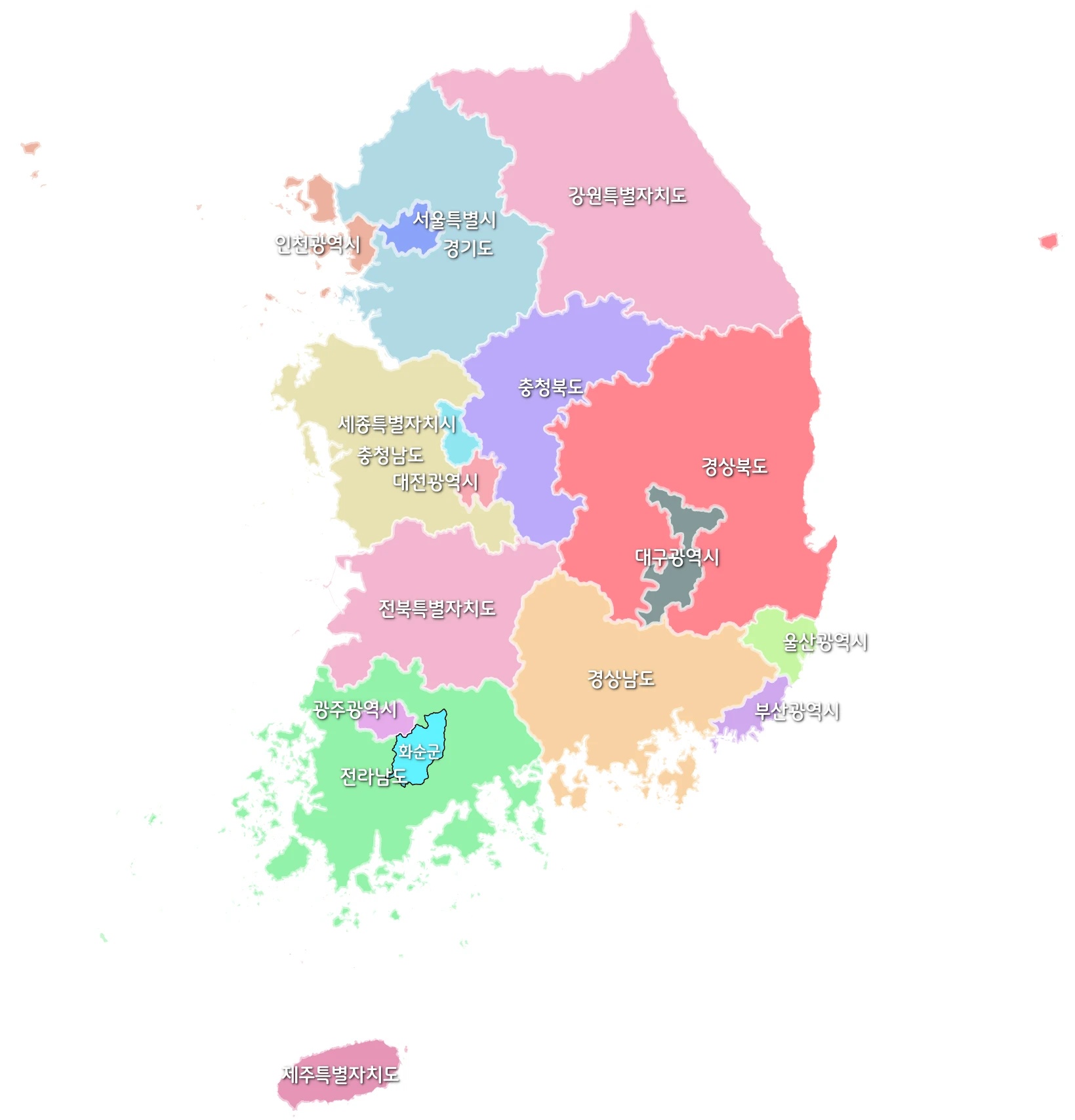 | 서울특별시 ( 605,214 ㎢*) | 전남 화순군 ( 787,182 ㎢, 서울 대비 130%) |