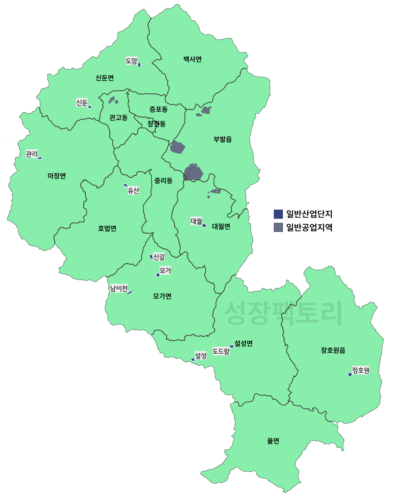 산업단지, 공업지역, 그 외 지역(기타 지역)별 공장 규제 차이