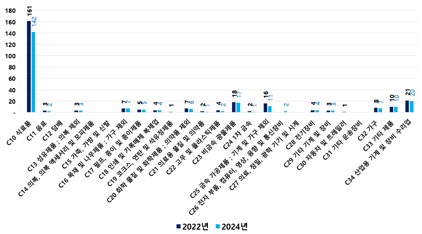 2) 2022 ~ 2024년 업종별 제조사업체 현황