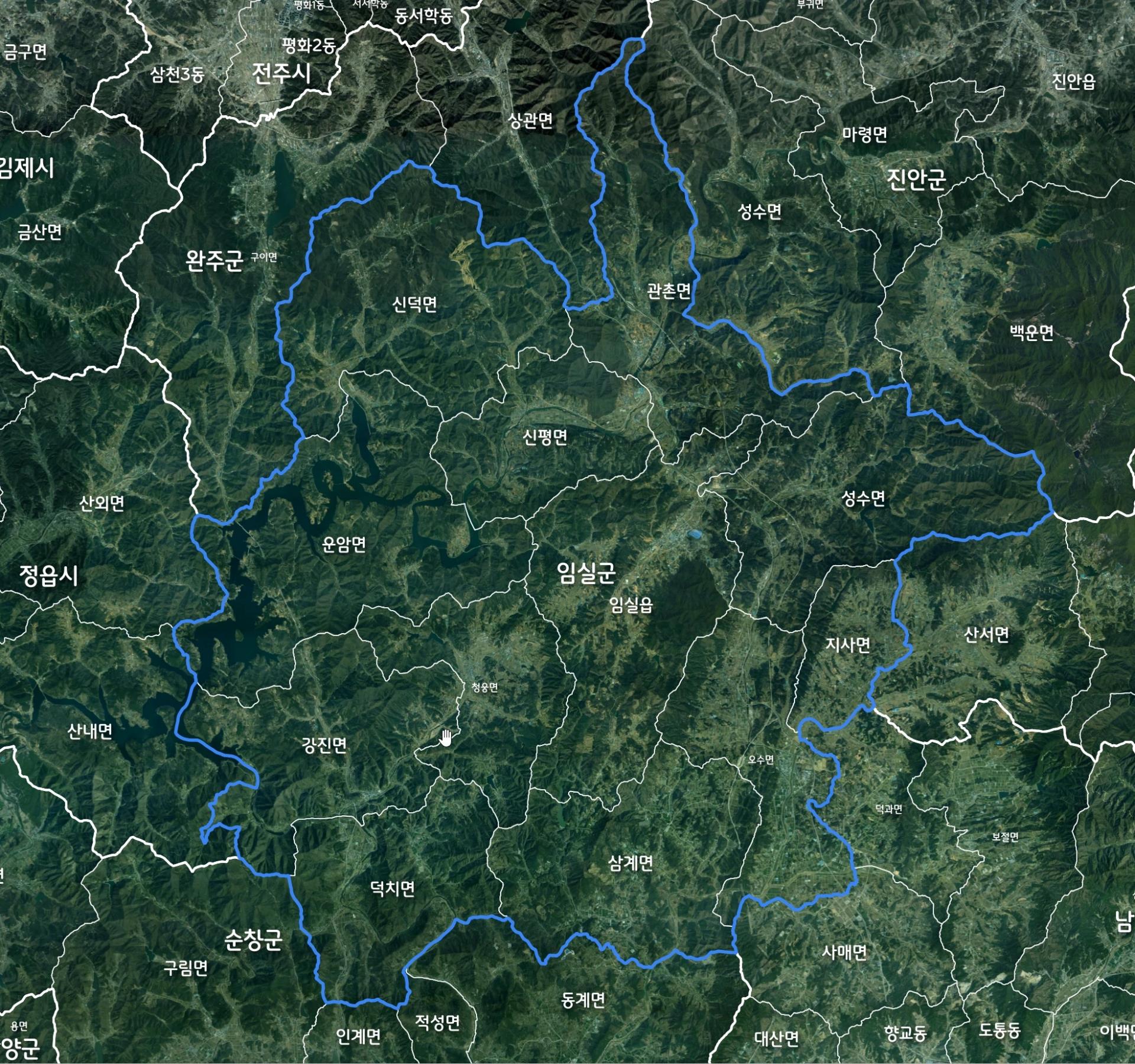 | 서울특별시 ( 605,214 ㎢*) | 전북 임실군 ( 597,153 ㎢, 서울 대비 99%) |