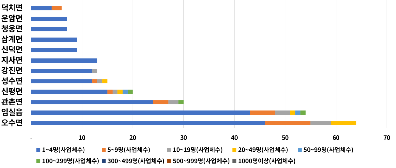 *** 공장 건축물이 없는 읍 · 면 · 동은 보통 반찬 등 식료품 제조, 인쇄소, 간판 제작소, 철공소 등 소규모 제조업이 '제조업소(2종근린생활시설 건축물의 한 용도)'에서 사업함. 수도권, 광역시 등에는 제조업소 외 '지식산업센터(구 아파트형 공장)'에도 다수의 제조사업체 있음
